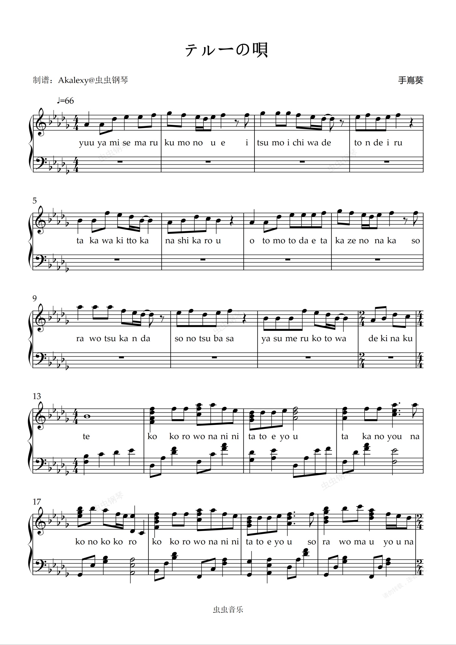 钢琴谱:テルーの唄(日语弹唱版)