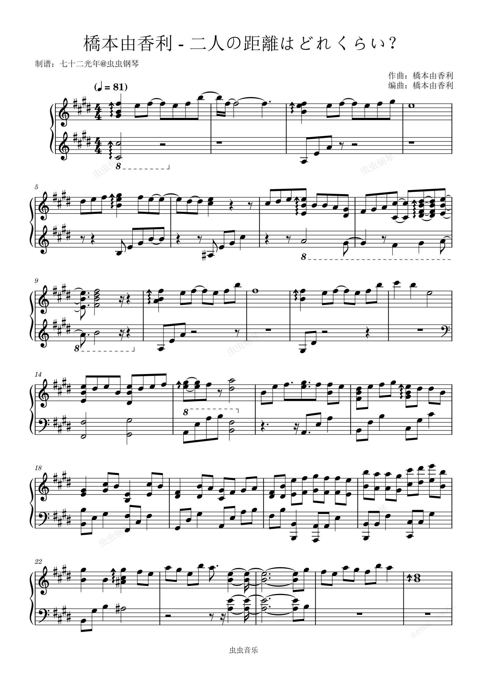 钢琴谱:二人の距離はどれくらい?