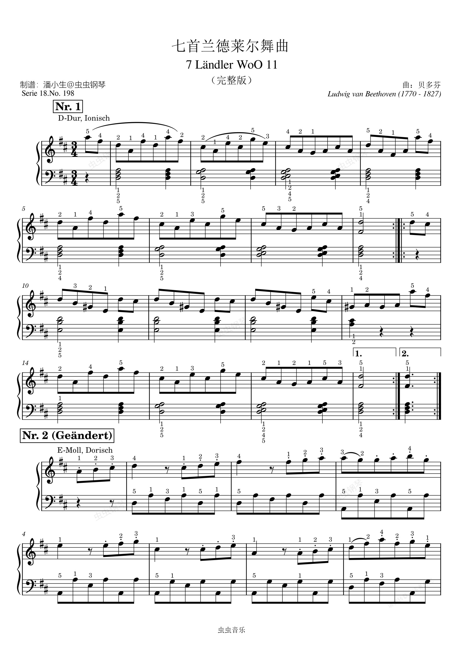 贝多芬 七首兰德莱尔舞曲, WoO 11 带指法完整原版 钢琴独奏 Beethoven 7 Landler
