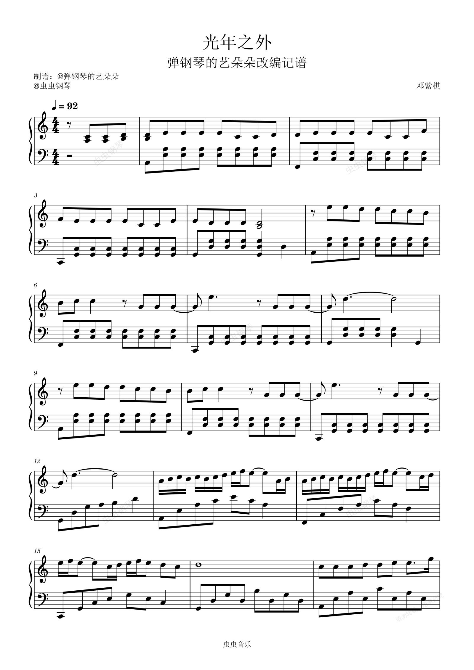 钢琴谱:光年之外(易奏谱)