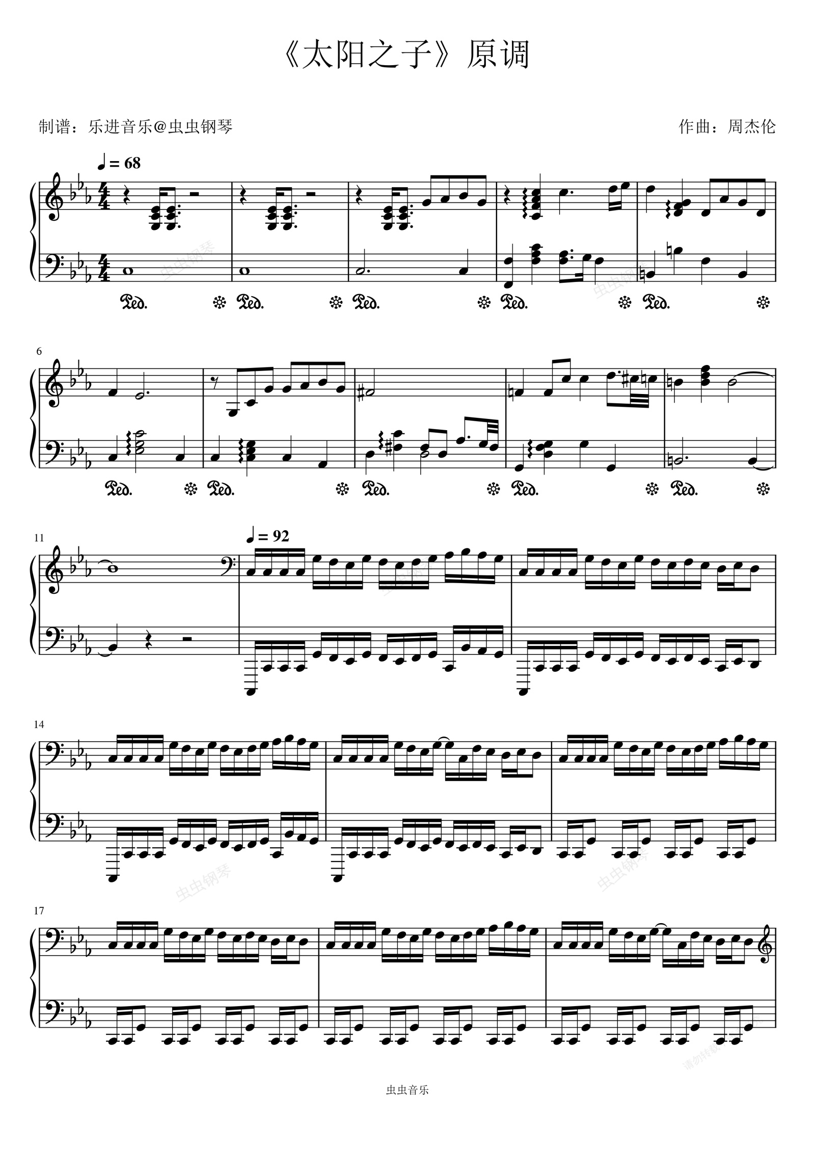 钢琴谱:《太阳之子》原调