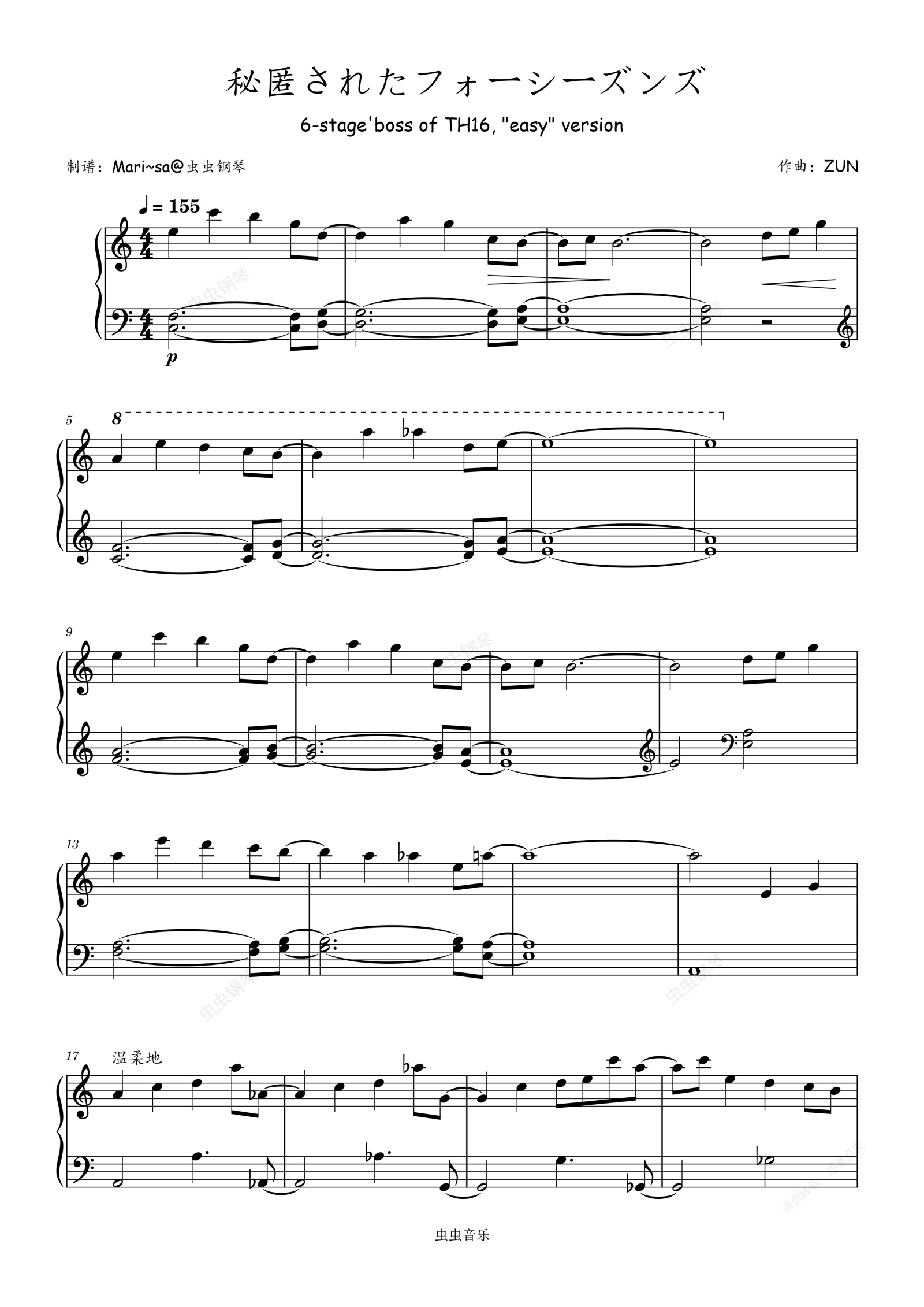 钢琴谱:被隐匿的四个季节 -「Easy」