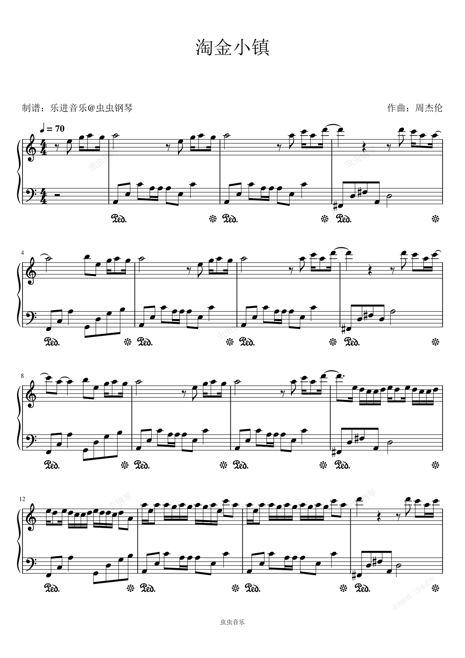 钢琴谱:《淘金小镇》C调简易版