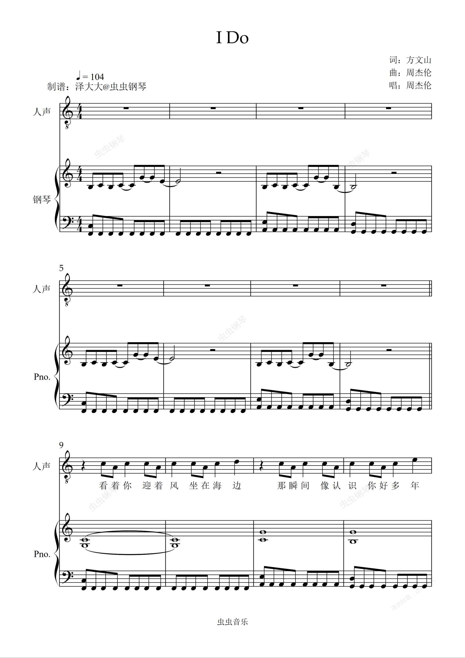 钢琴谱:I Do【C调弹唱附词】婚礼推荐 泽大大 周杰伦