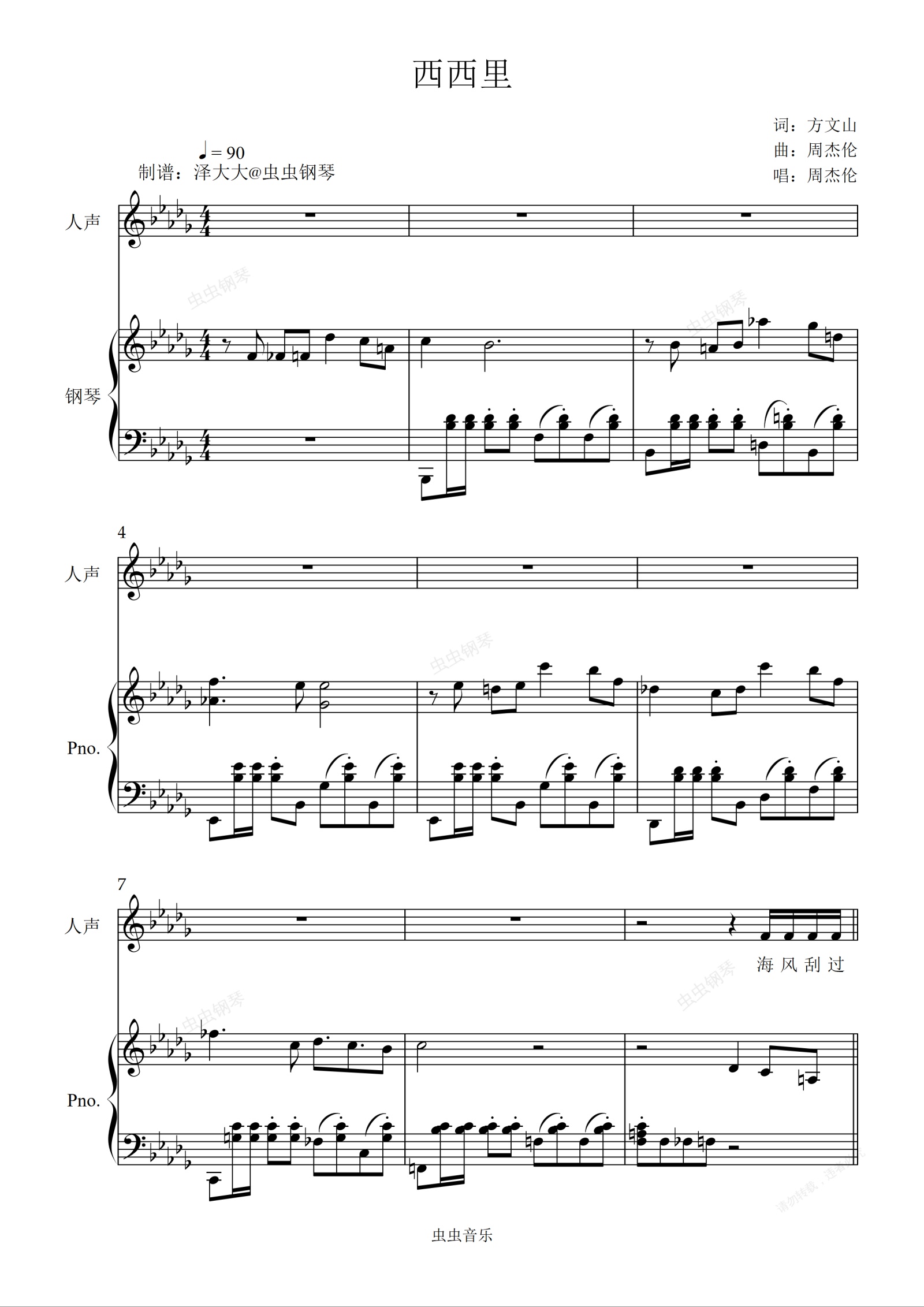 钢琴谱:西西里【完美弹唱附词】泽大大 周杰伦