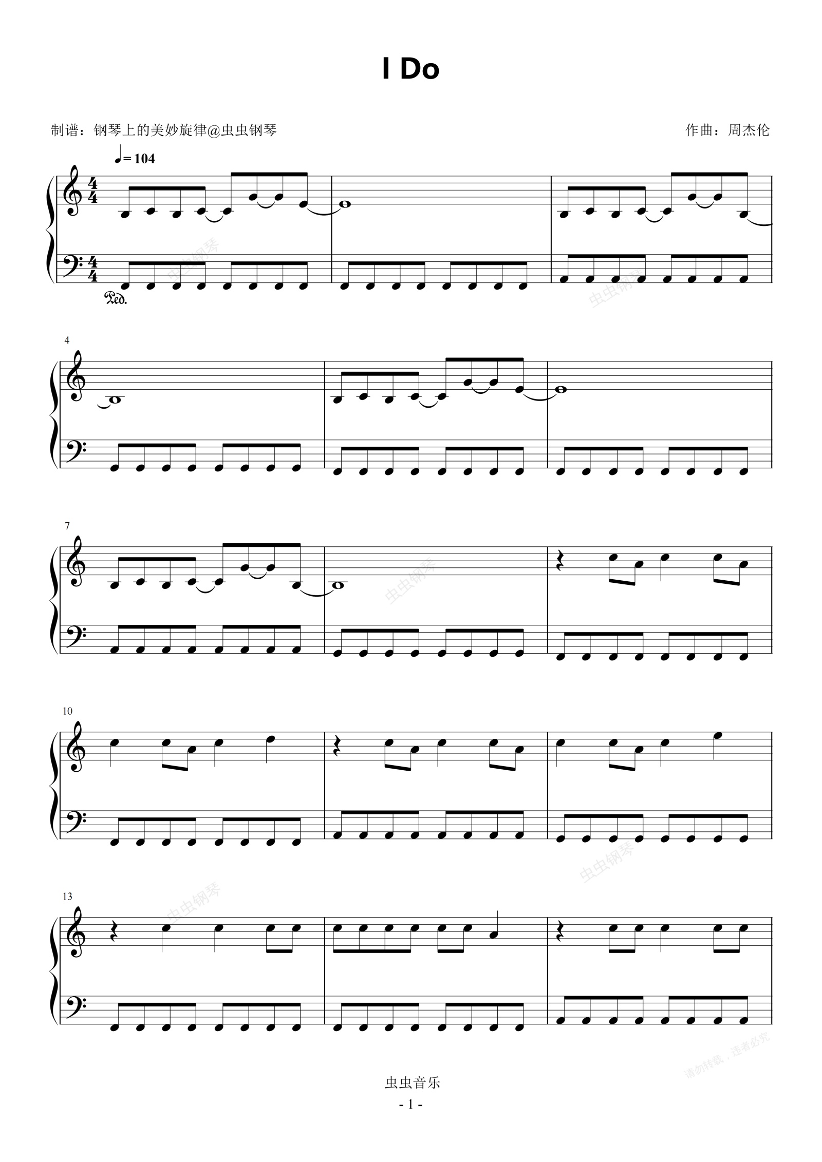 钢琴谱:I Do C调简易版 周杰伦