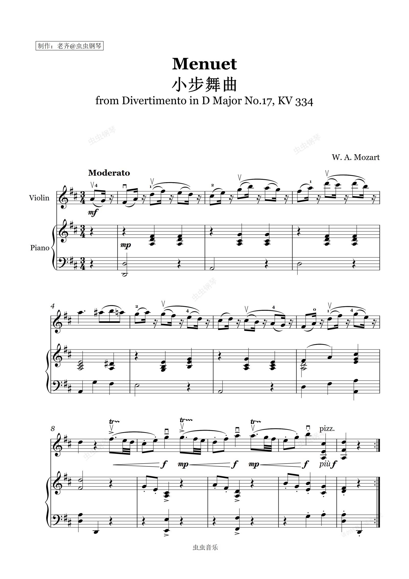 钢琴谱:【小提琴】小步舞曲-莫扎特