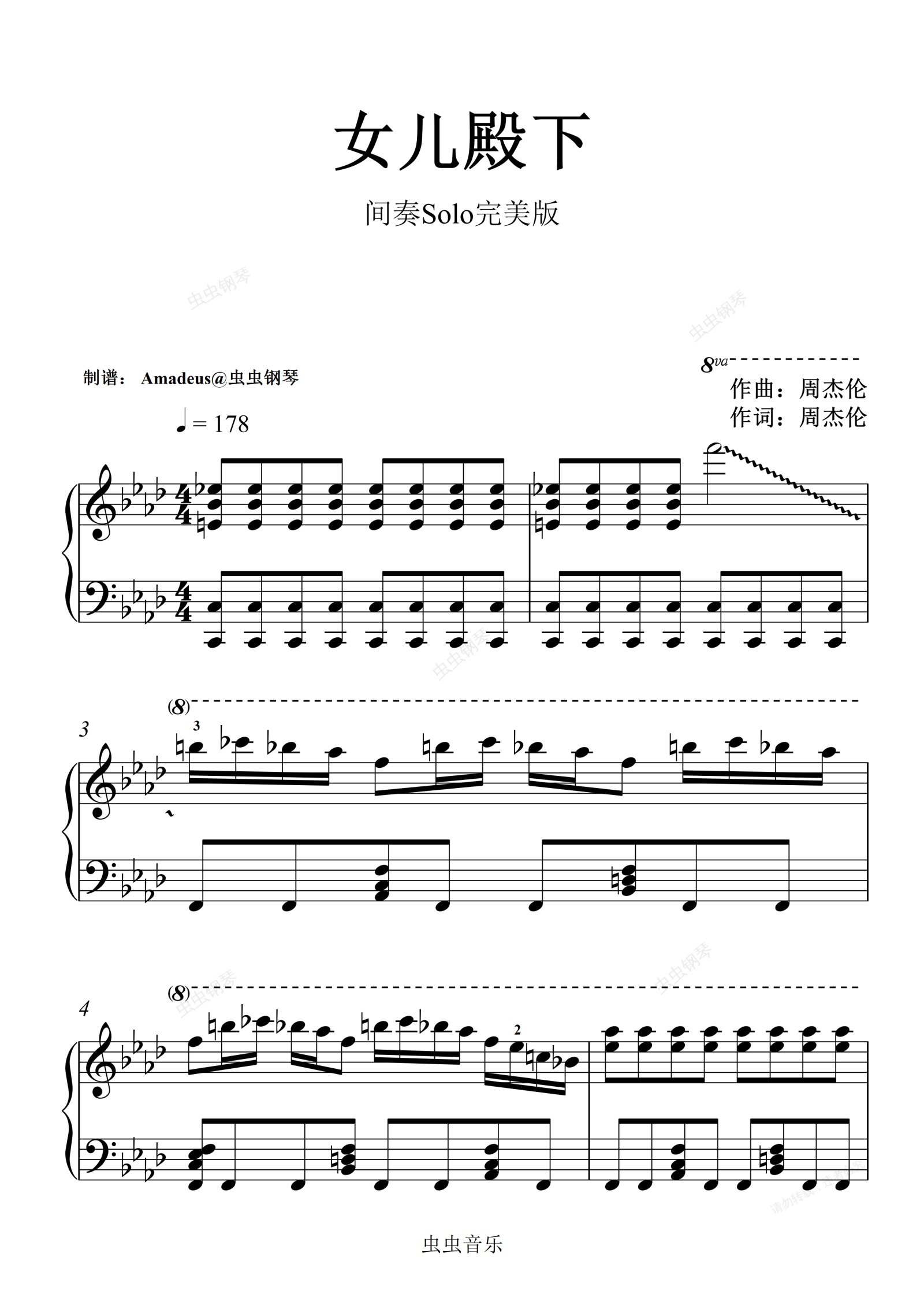 钢琴谱:周杰伦<女儿殿下> 间奏完美SOLO钢琴谱,含指法,编配稍难,但非常爵士还原。
