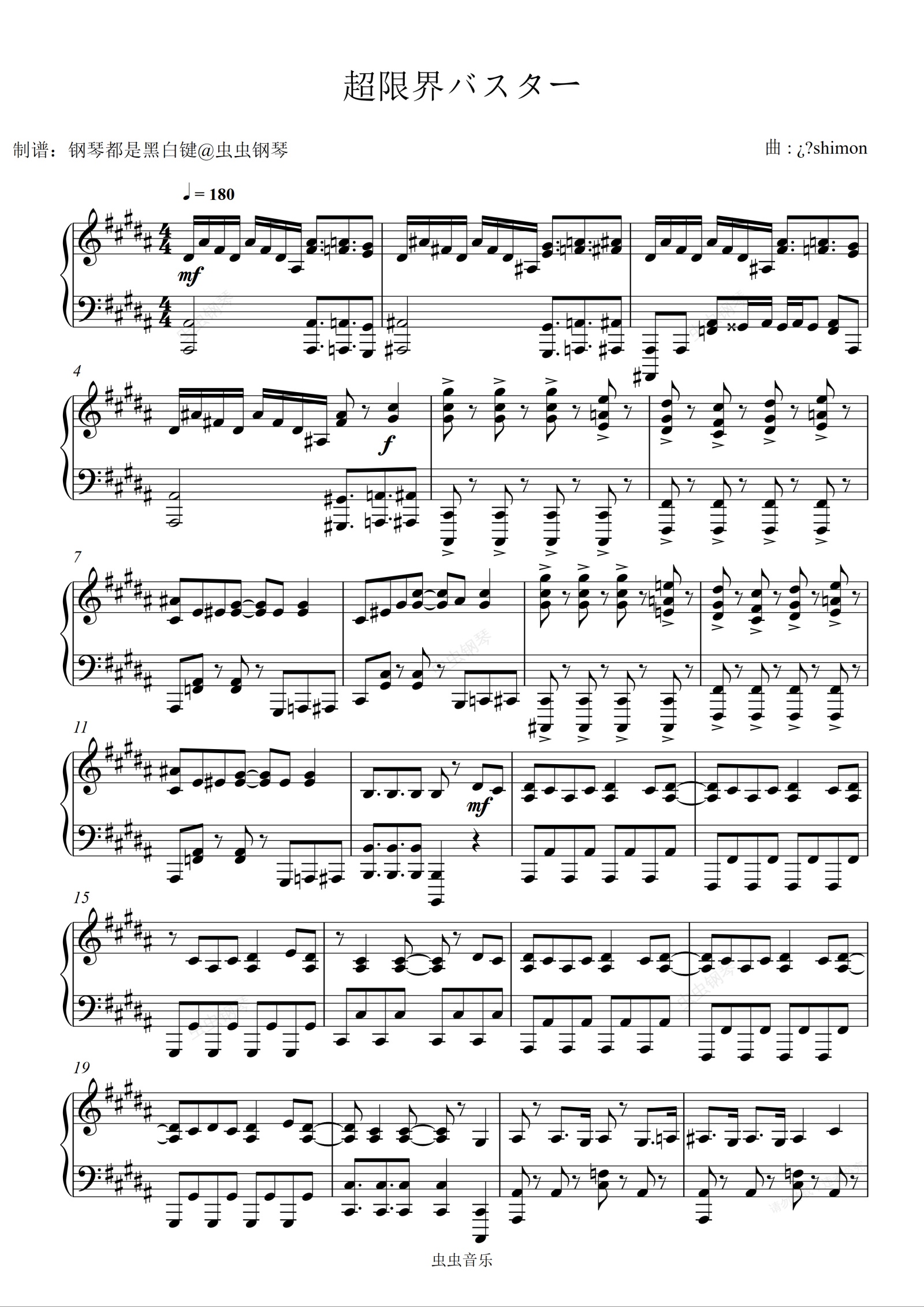 钢琴谱:【重音テト】超限界バスター/超极限破坏者【¿?shimon】