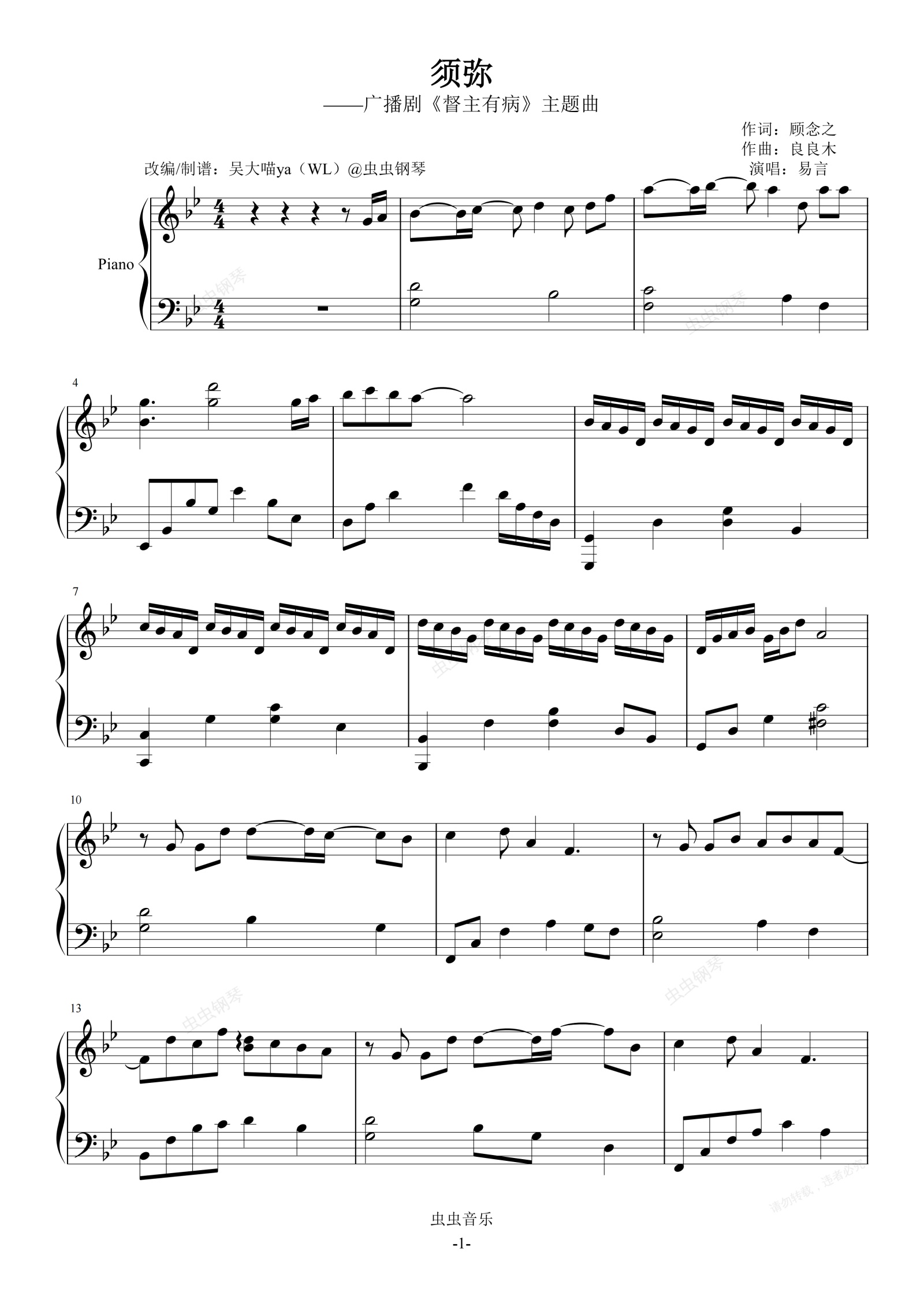 钢琴谱:须弥-广播剧《督主有病》主题曲 原调