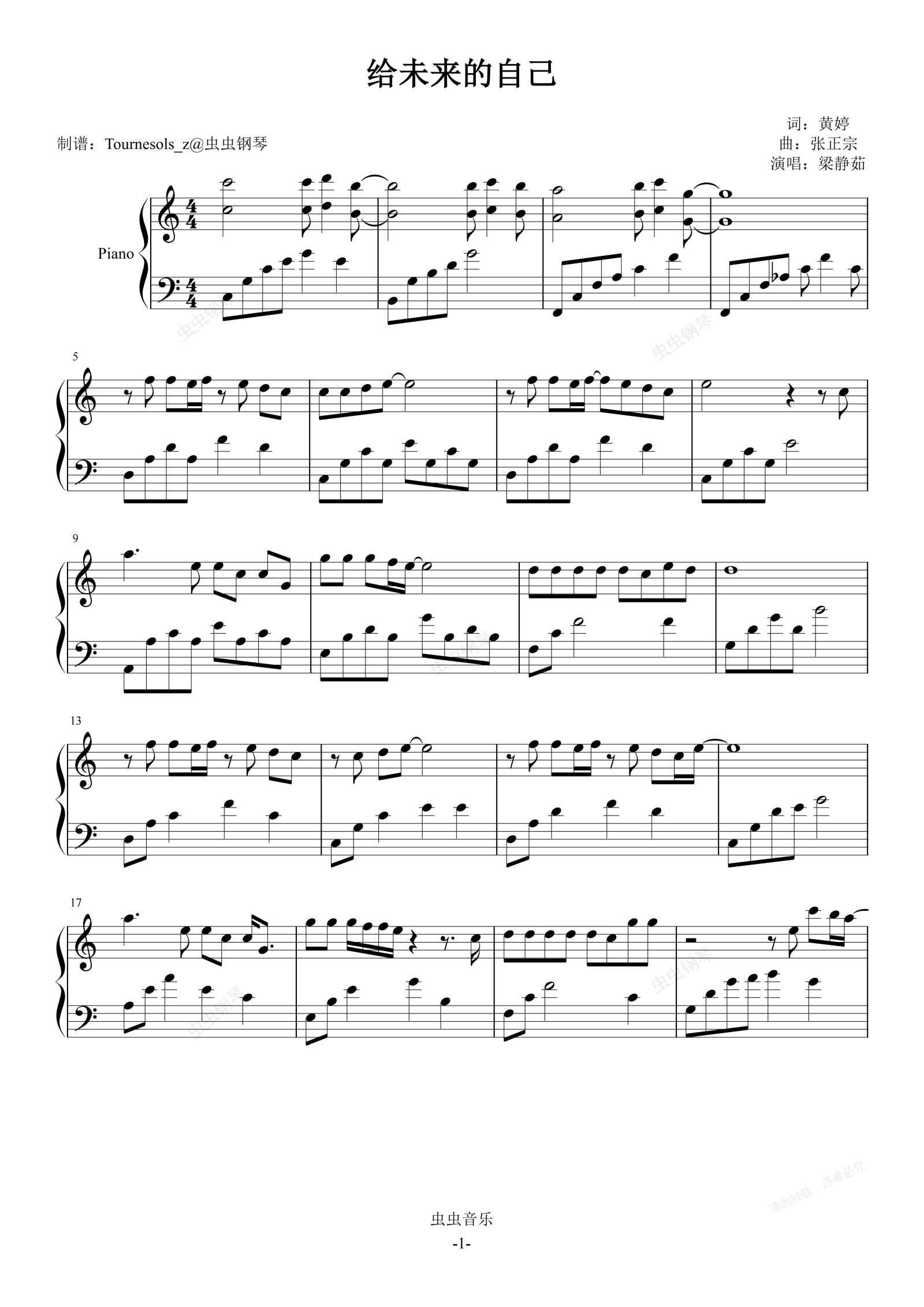 钢琴谱:给未来的自己(C调)
