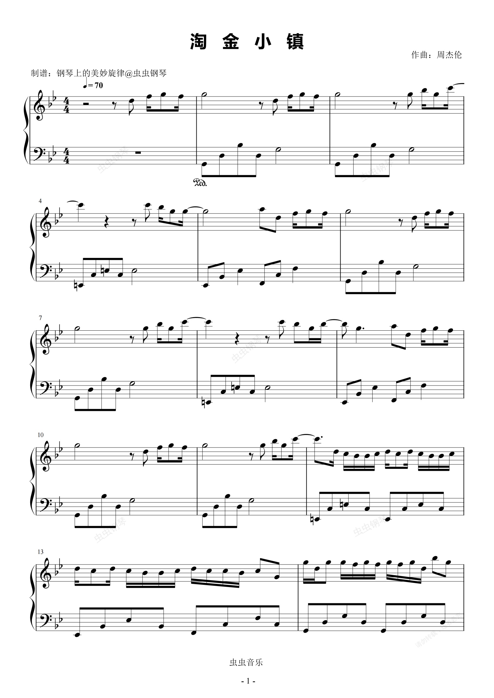 钢琴谱:淘金小镇 原调简易 周杰伦