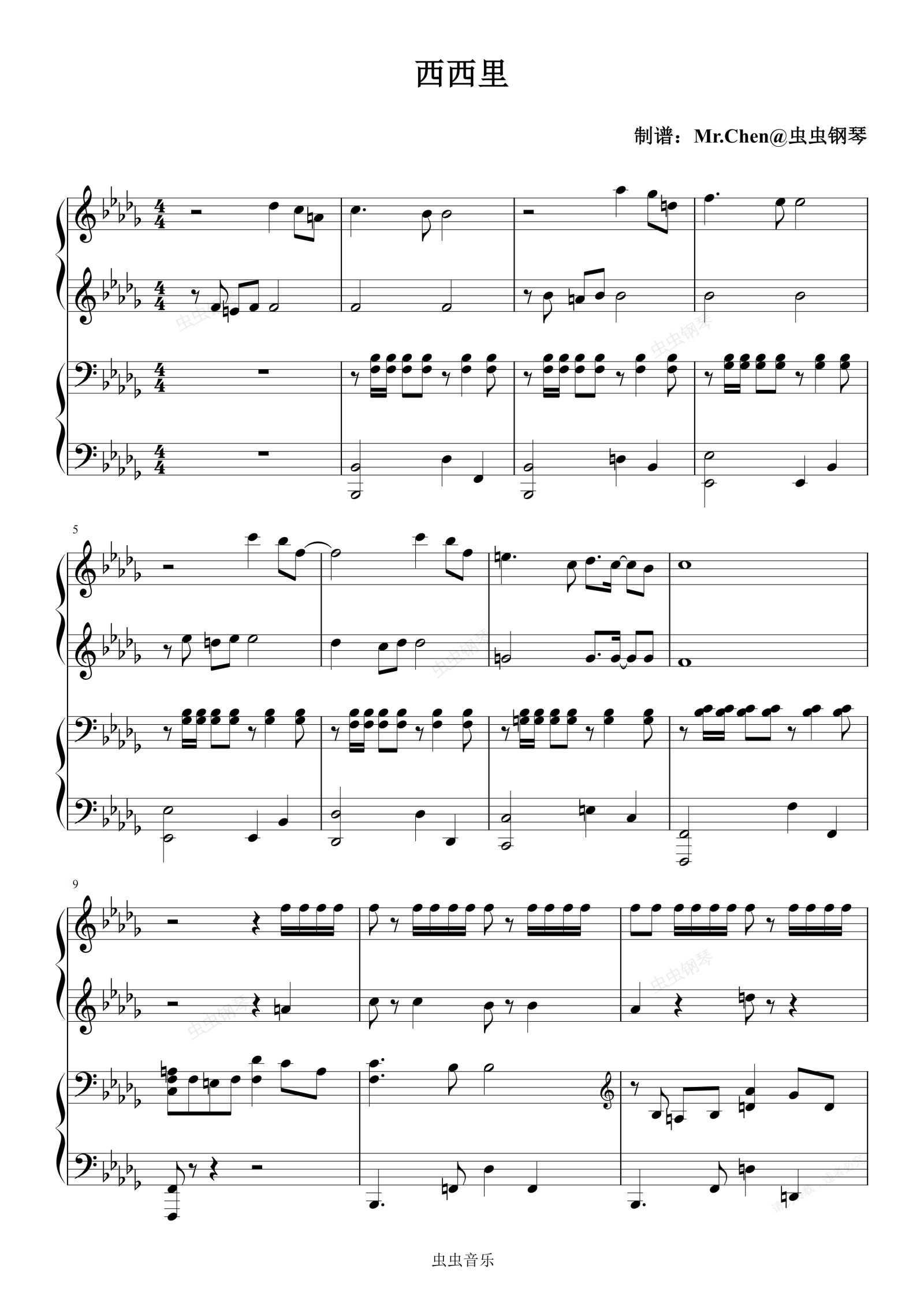 钢琴谱:西西里 (四手联弹)- 周杰伦