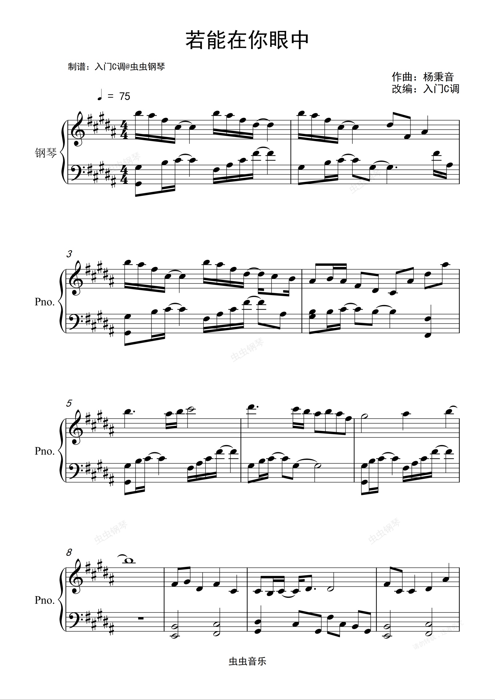 钢琴谱:若能在你眼中 (《白日提灯》影视剧奔爱曲)—刘宇宁【原调简单入门版】