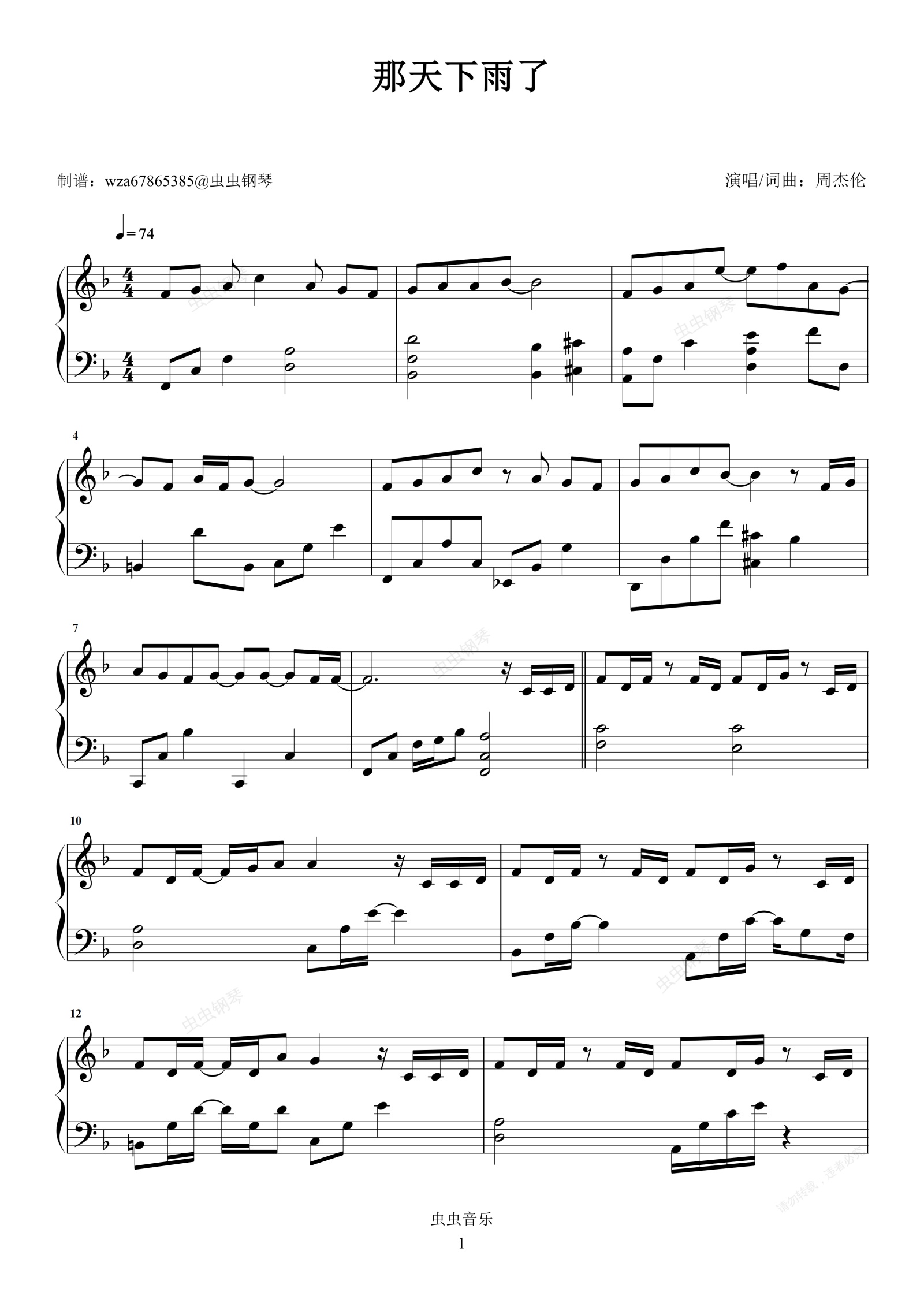 钢琴谱:那天下雨了