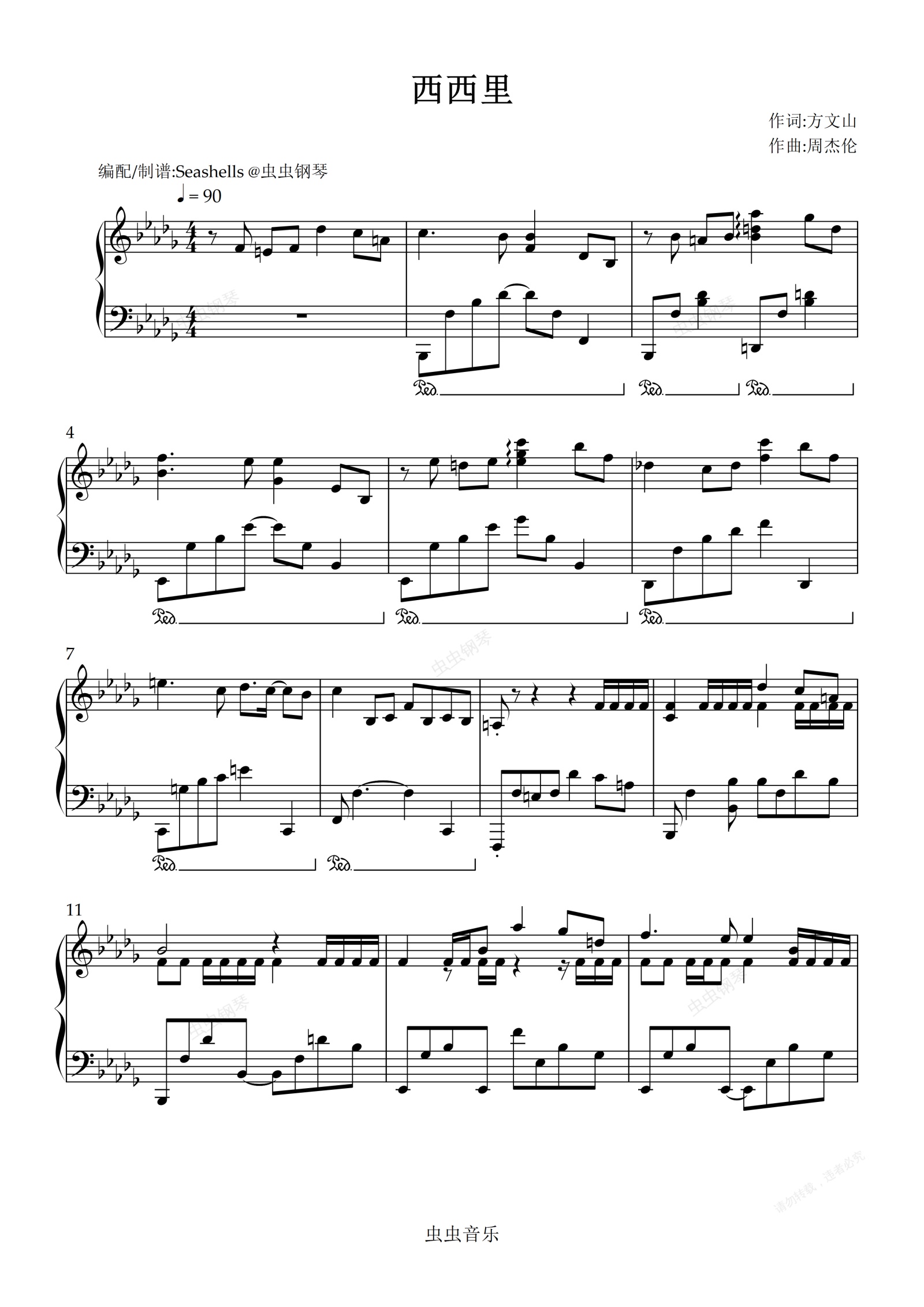 钢琴谱:周杰伦 - 《西西里》钢琴独奏谱