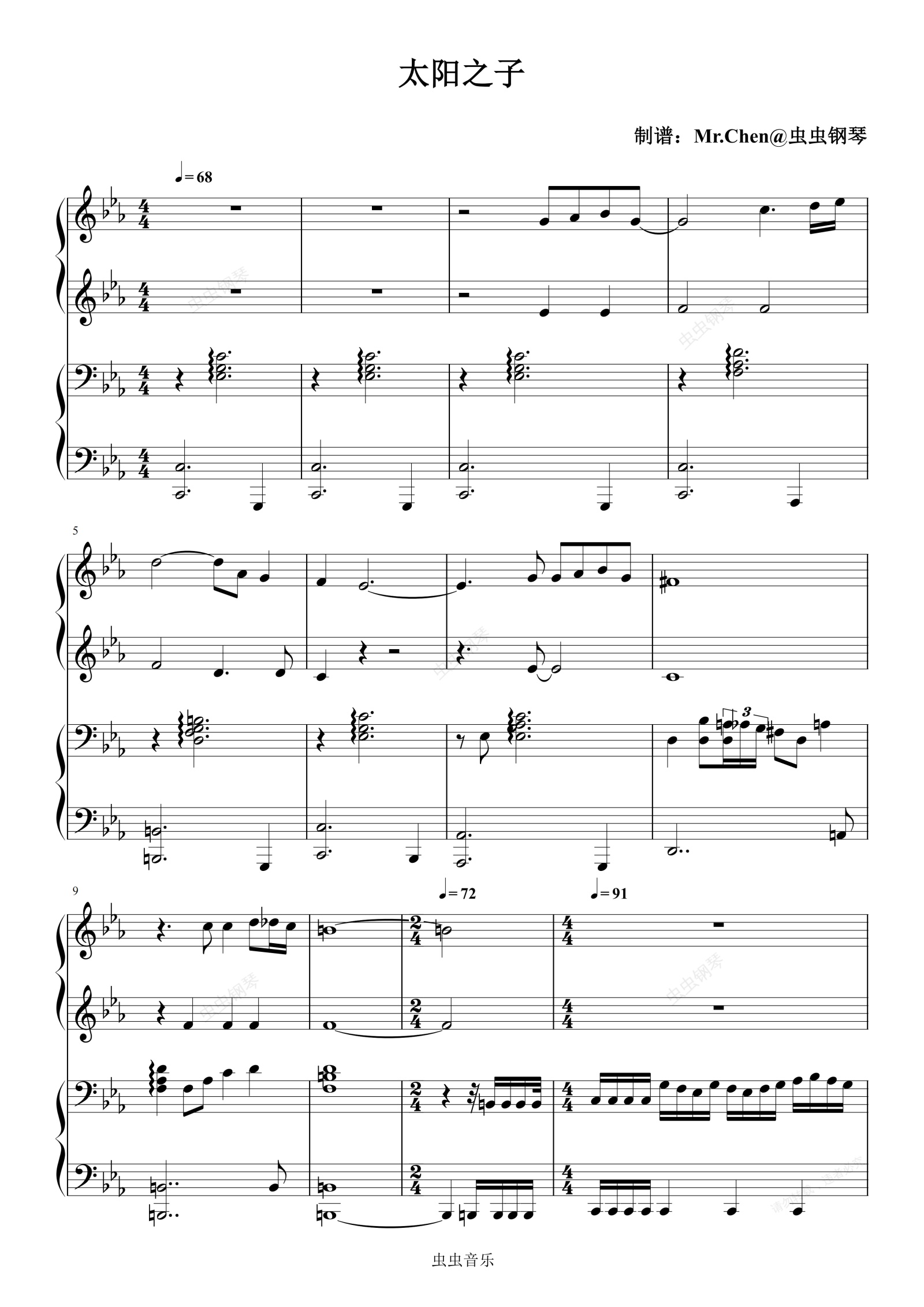 钢琴谱:太阳之子 (四手联弹)- 周杰伦 极度还原