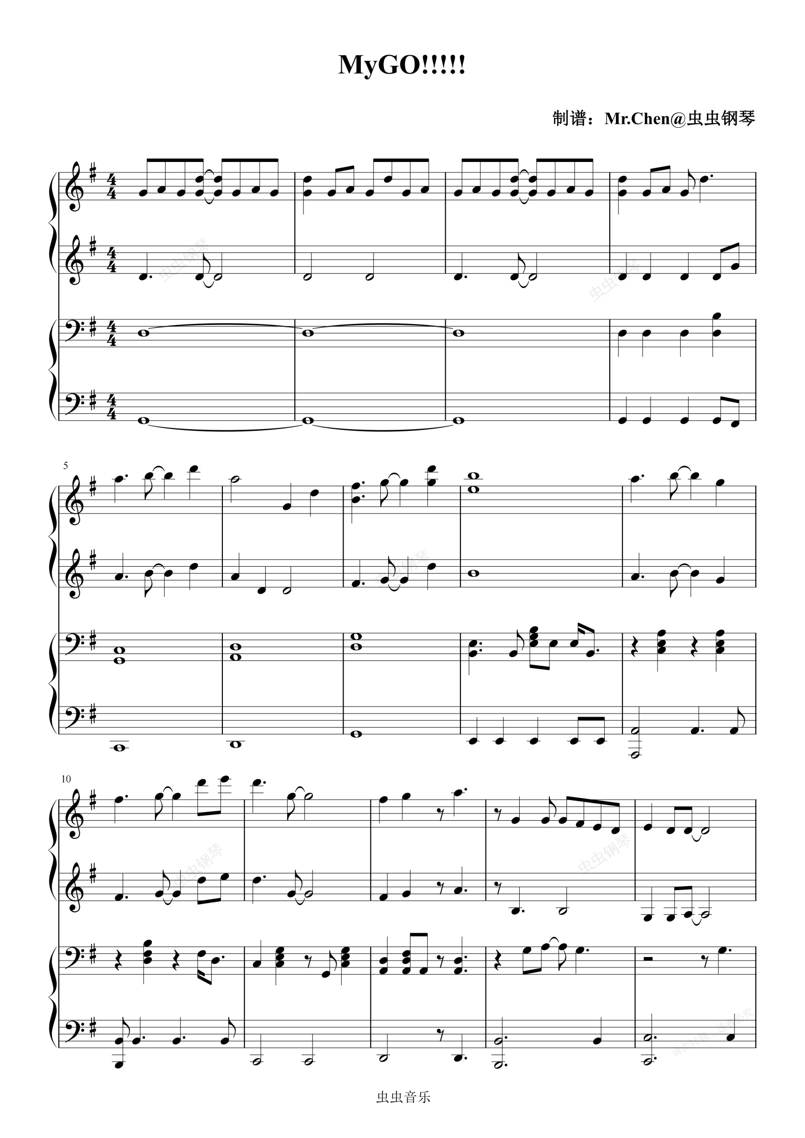 钢琴谱:MyGO!!!!! (四手联弹)G调 - BanG Dream!