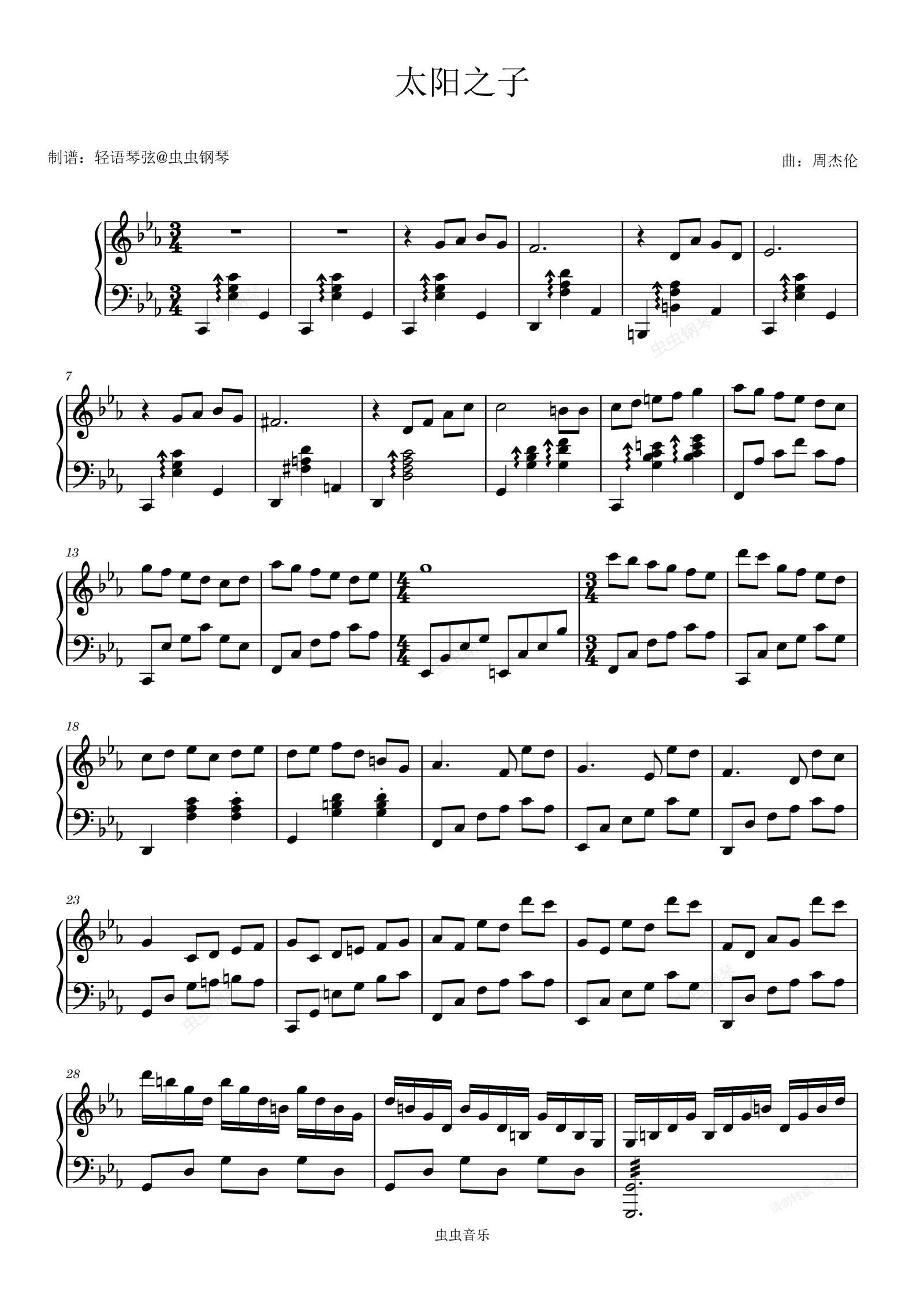 钢琴谱:《太阳之子》钢琴改编版