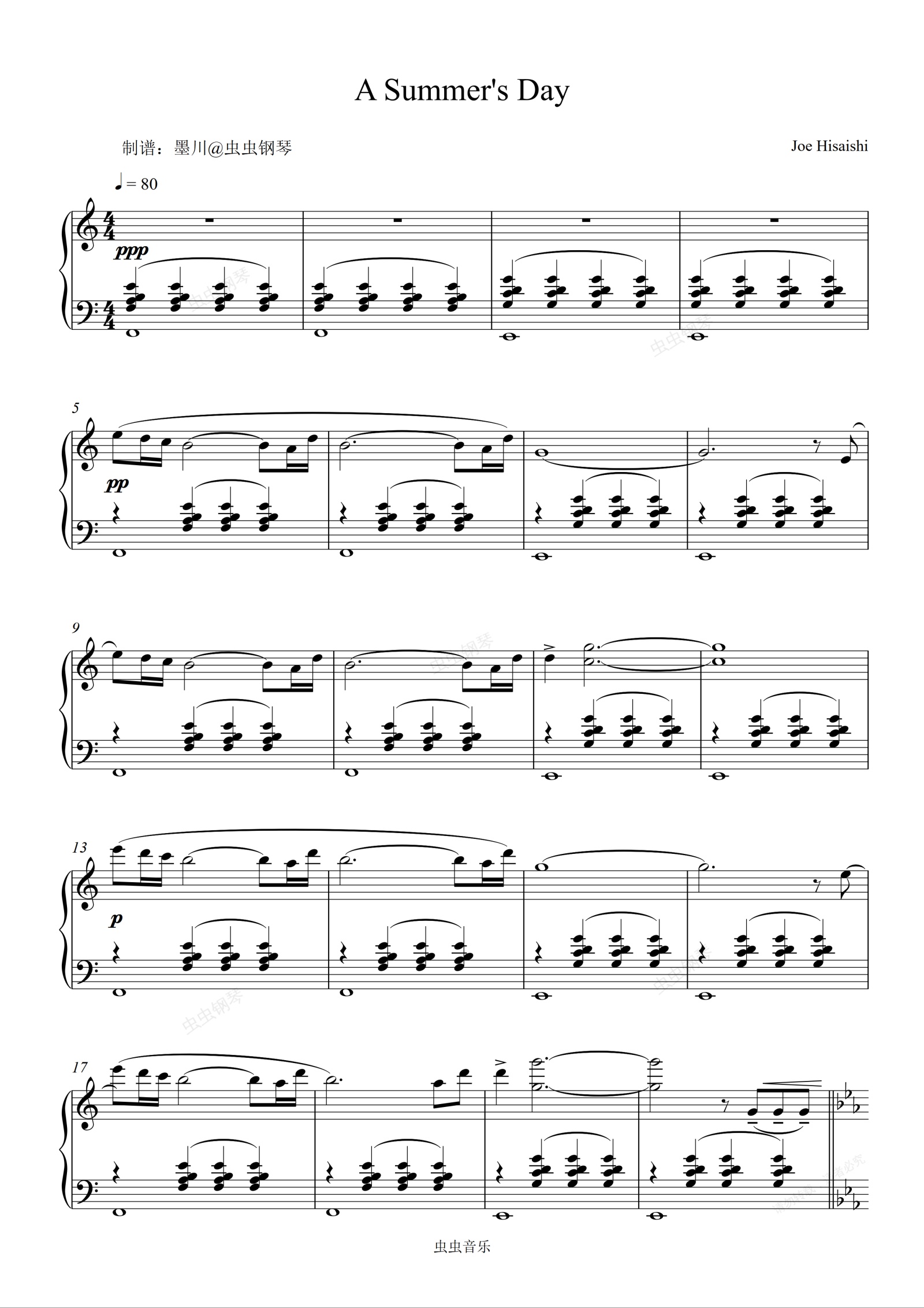 钢琴谱:A Summer's Day—久石让