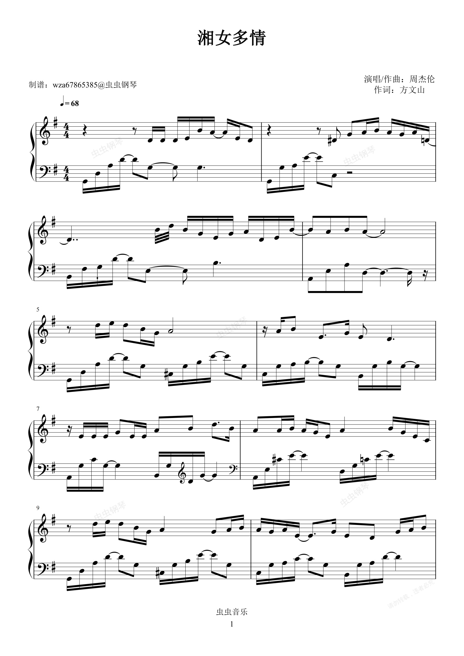 钢琴谱:湘女多情