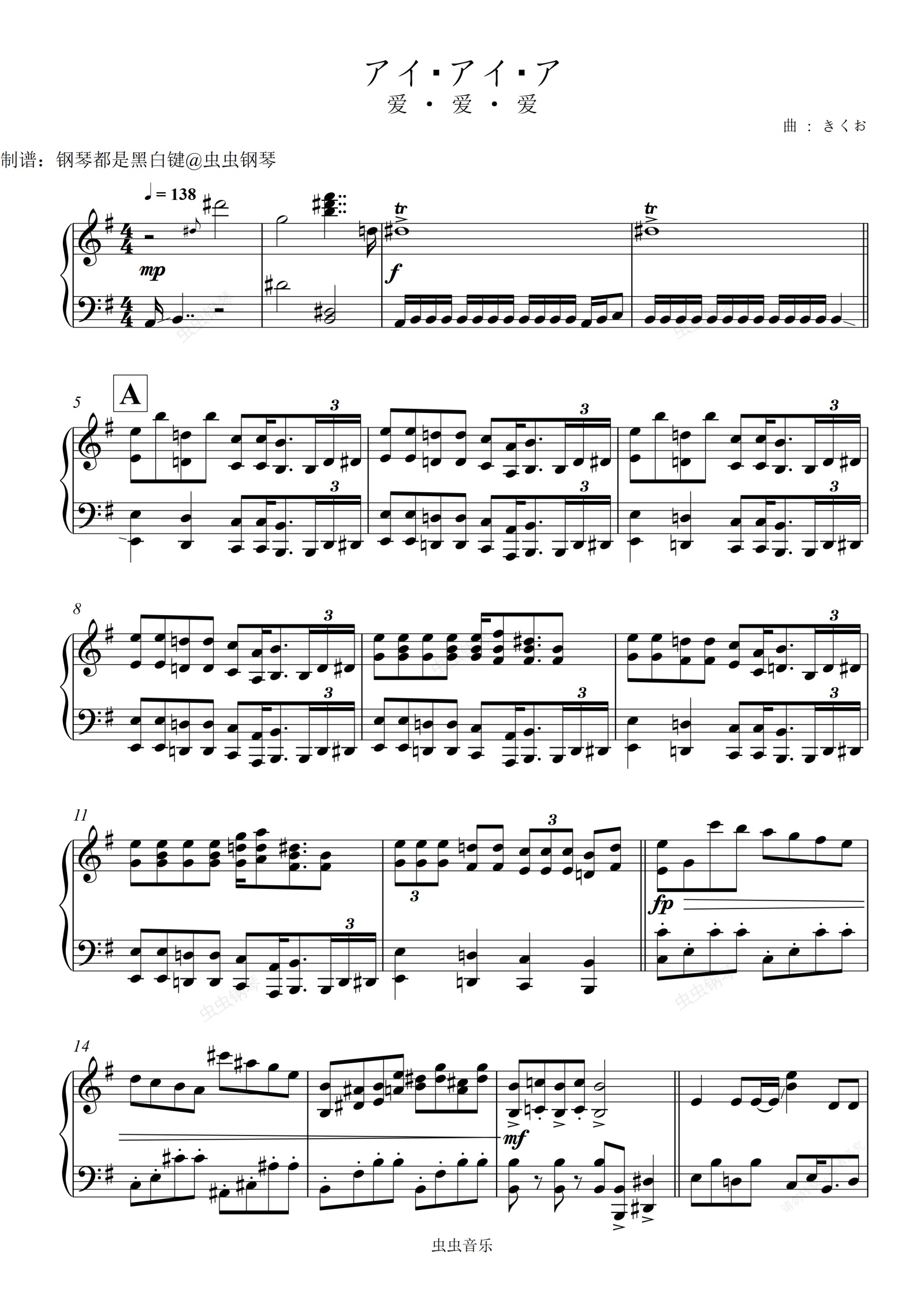 钢琴谱:【Ado】アイ・アイ・ア /爱 · 爱 · 爱