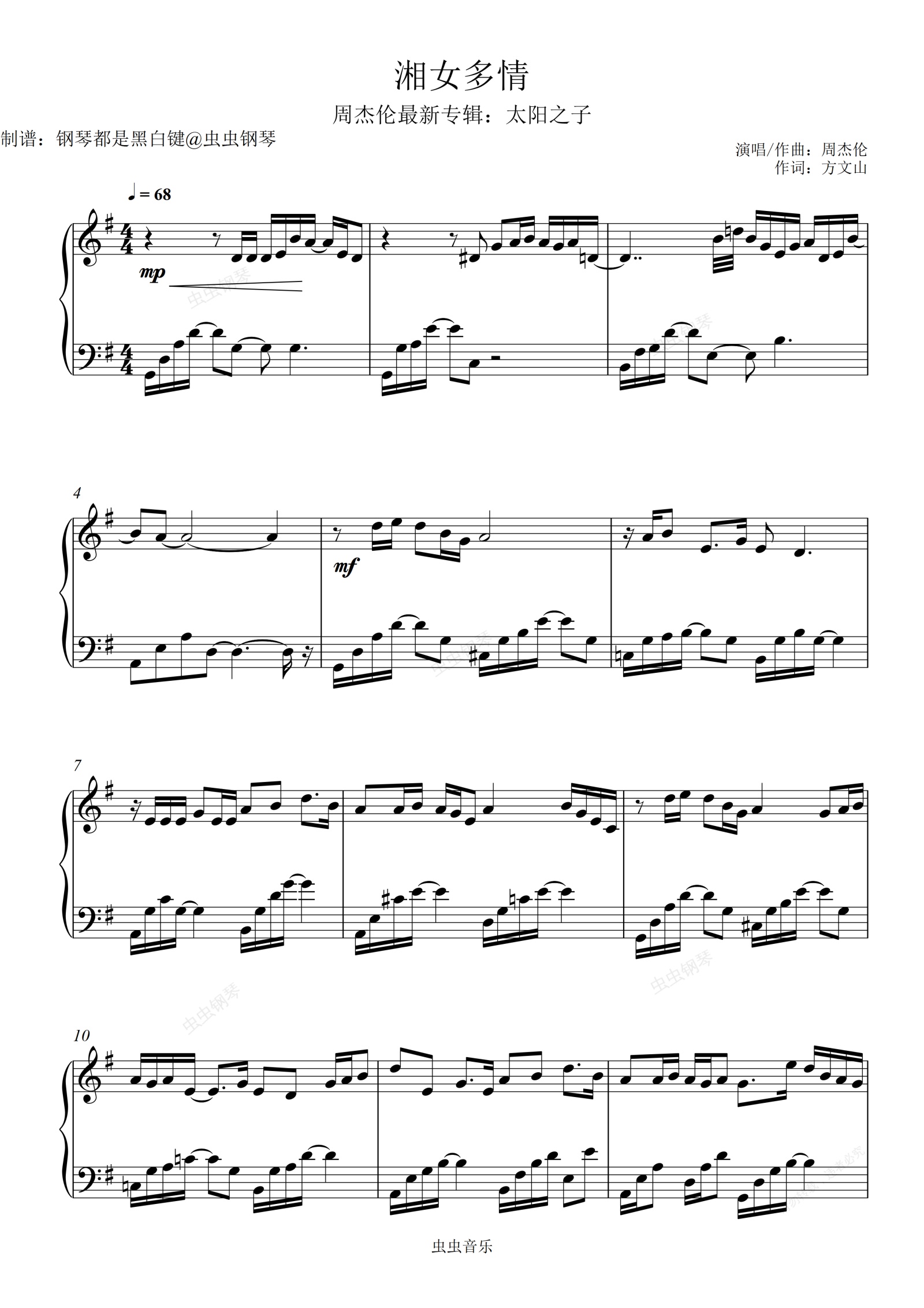 钢琴谱:【周杰伦太阳之子】湘女多情(抒情演奏版)
