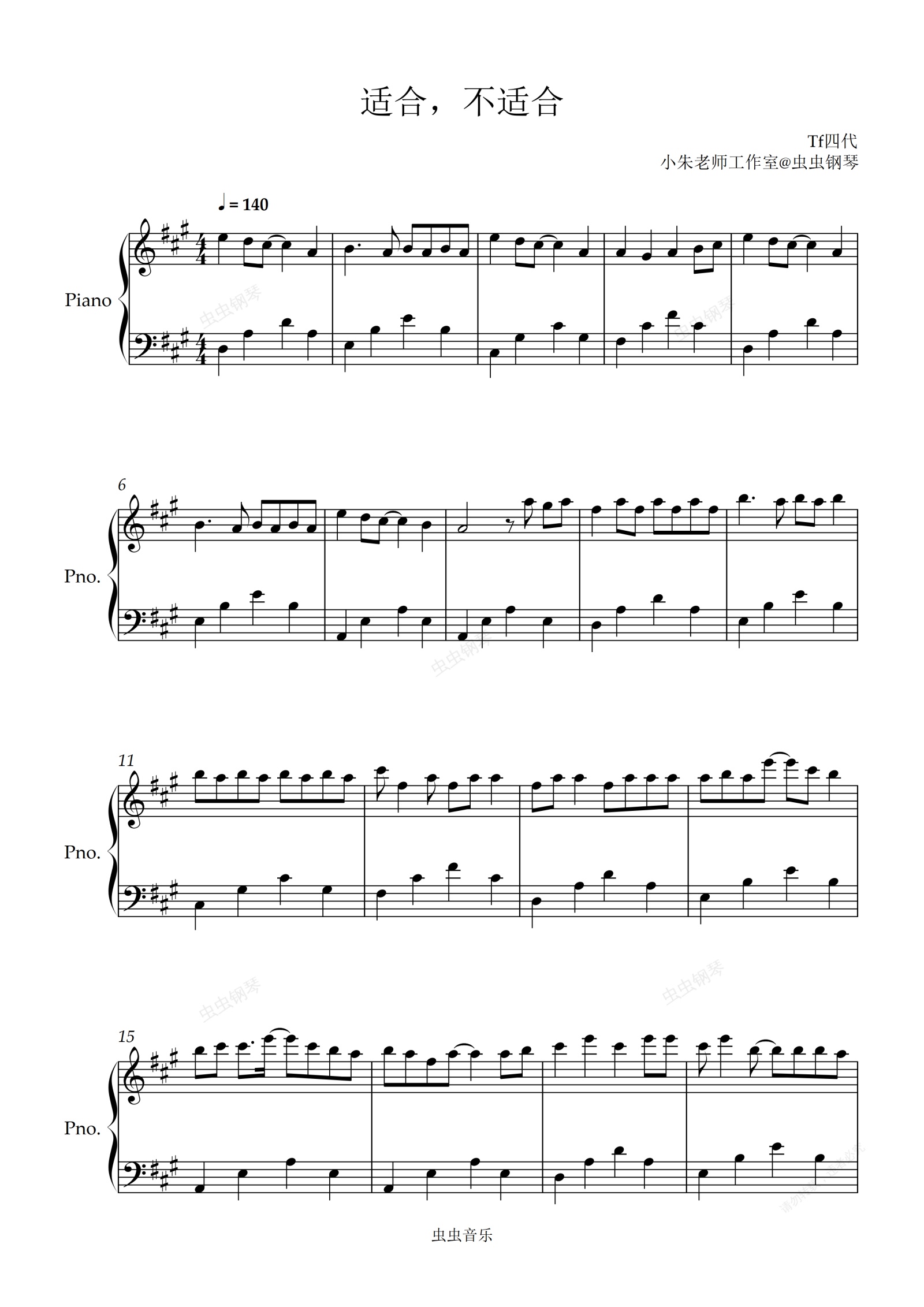 钢琴谱:适合,不适合
