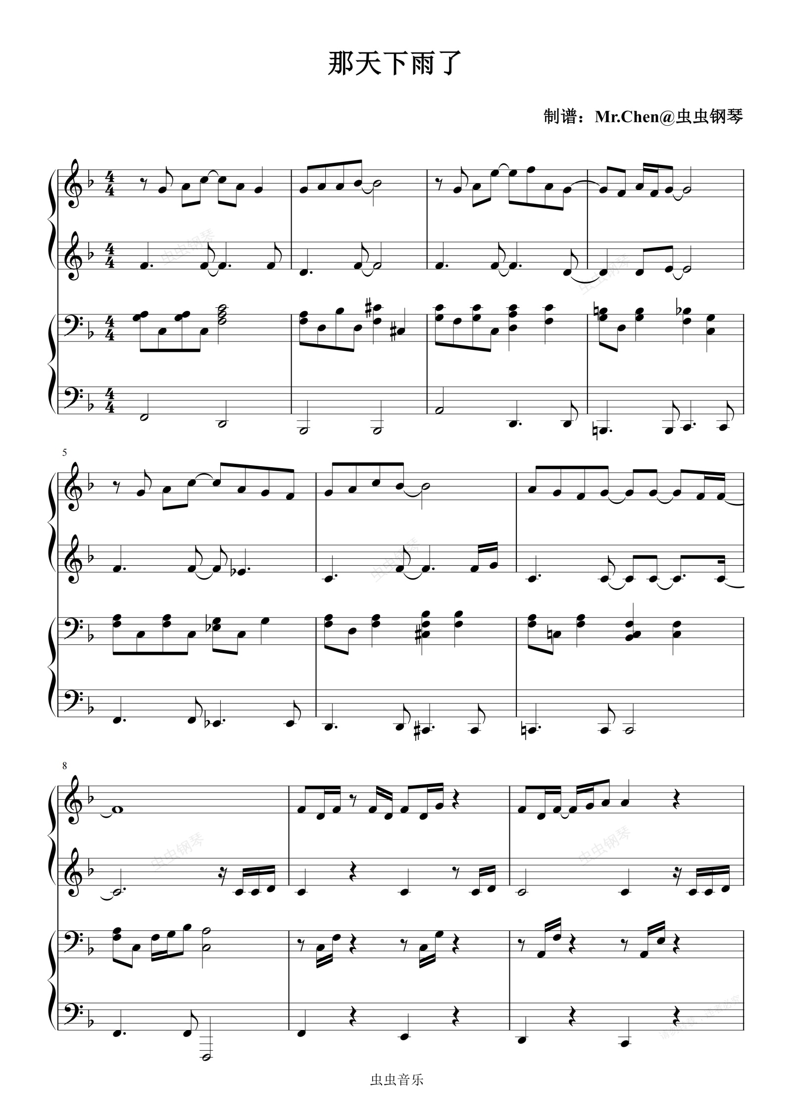 钢琴谱:那天下雨了 (四手联弹)- 周杰伦