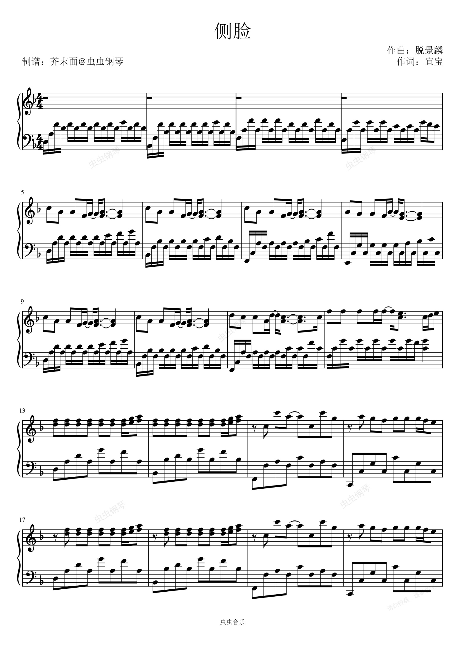 钢琴谱:侧脸