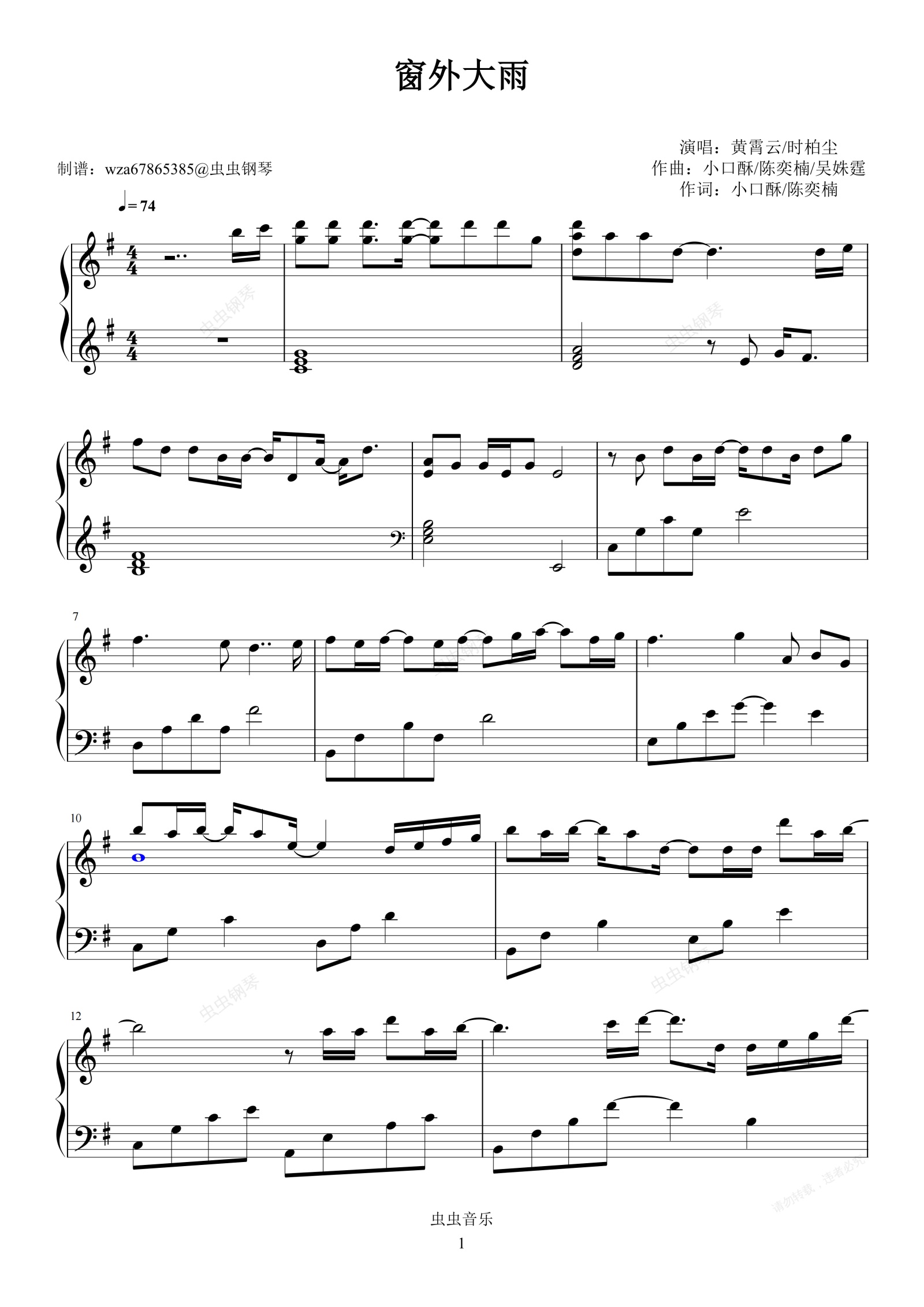 钢琴谱:窗外大雨