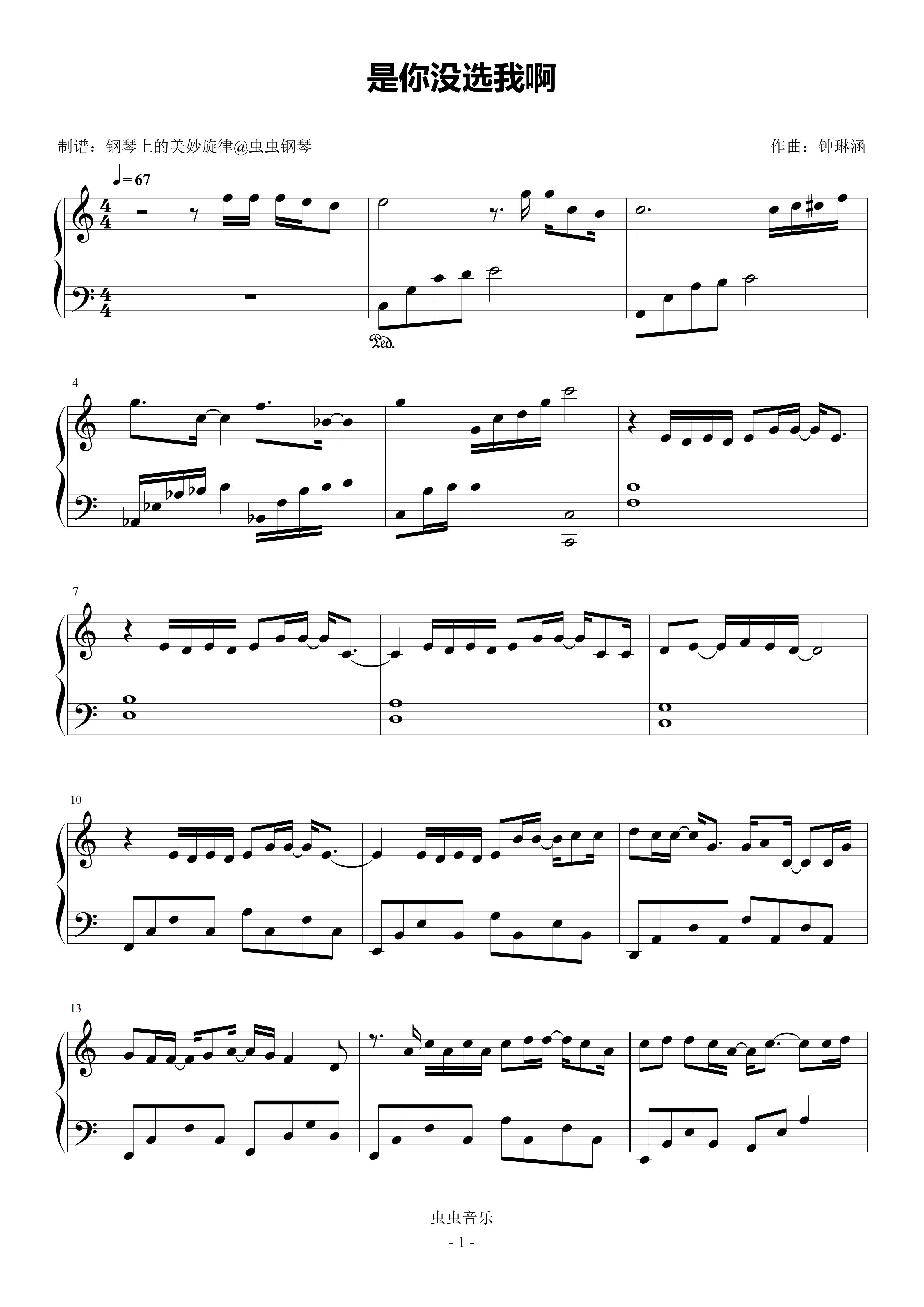 钢琴谱:是你没选我啊 C调简易版 音乐科代表洪嘉源