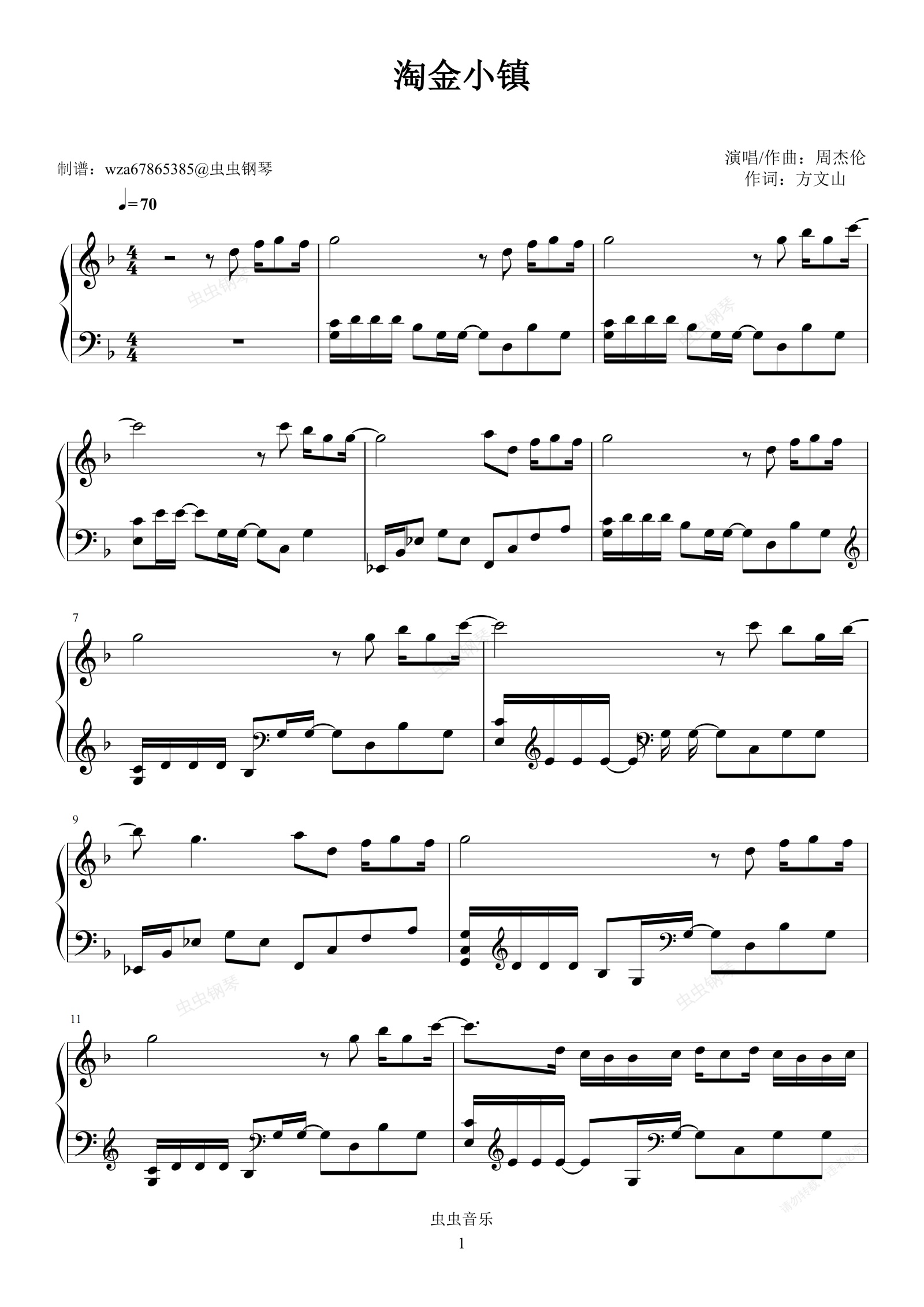 钢琴谱:淘金小镇