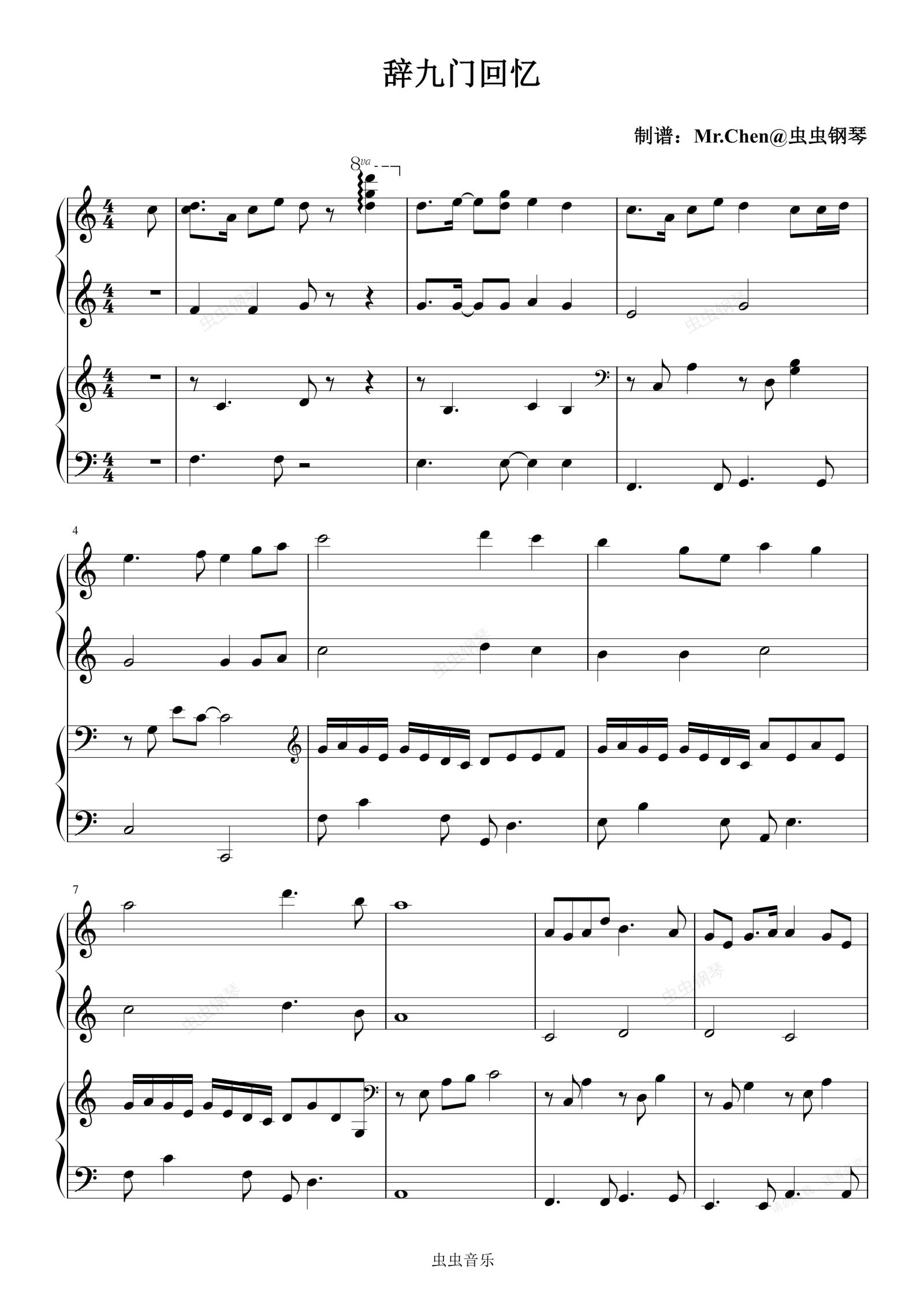 钢琴谱:辞九门回忆 (四手联弹)C调 - 等什么君
