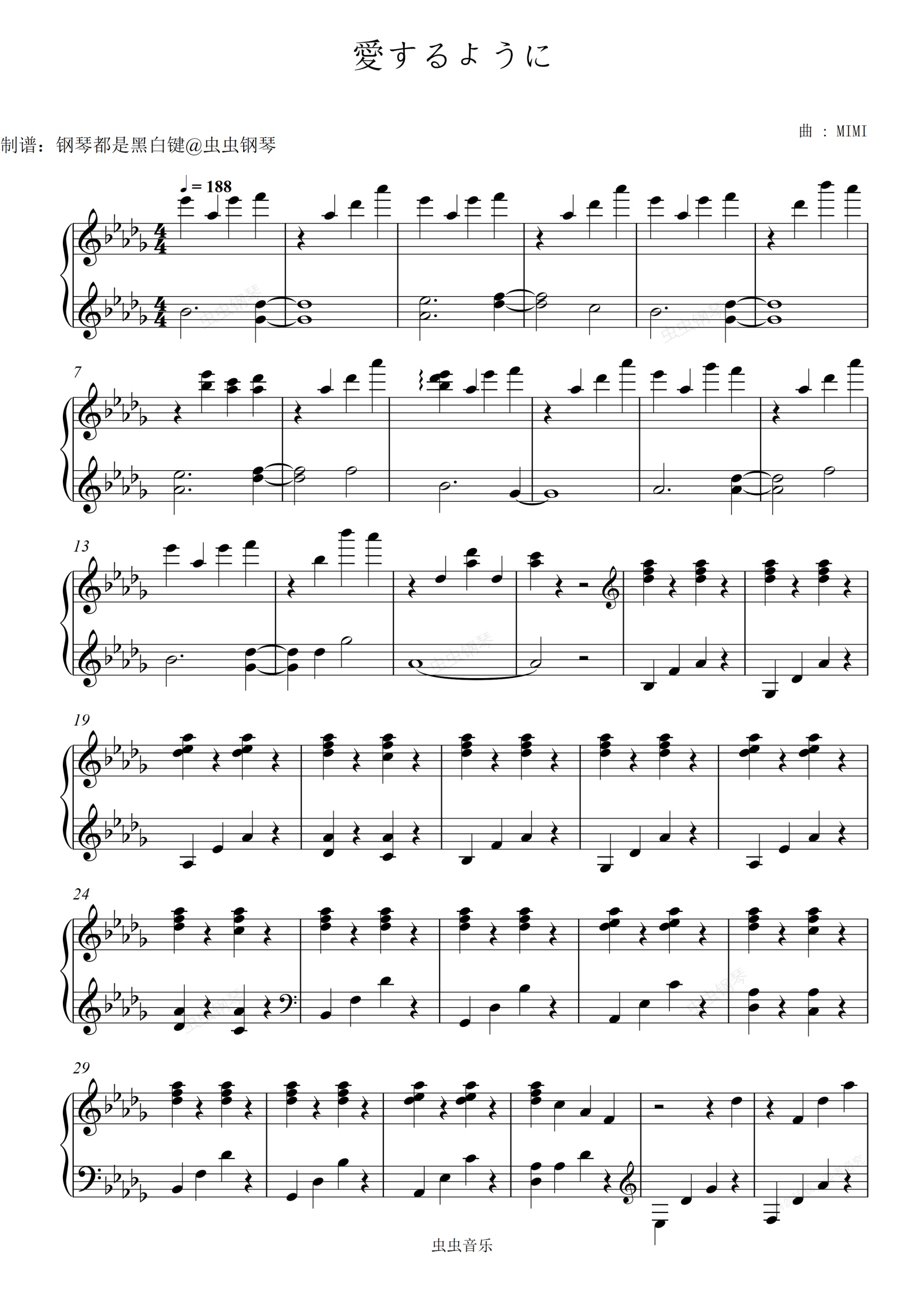 钢琴谱:【MIMI / 可不】愛するように/希望能去爱