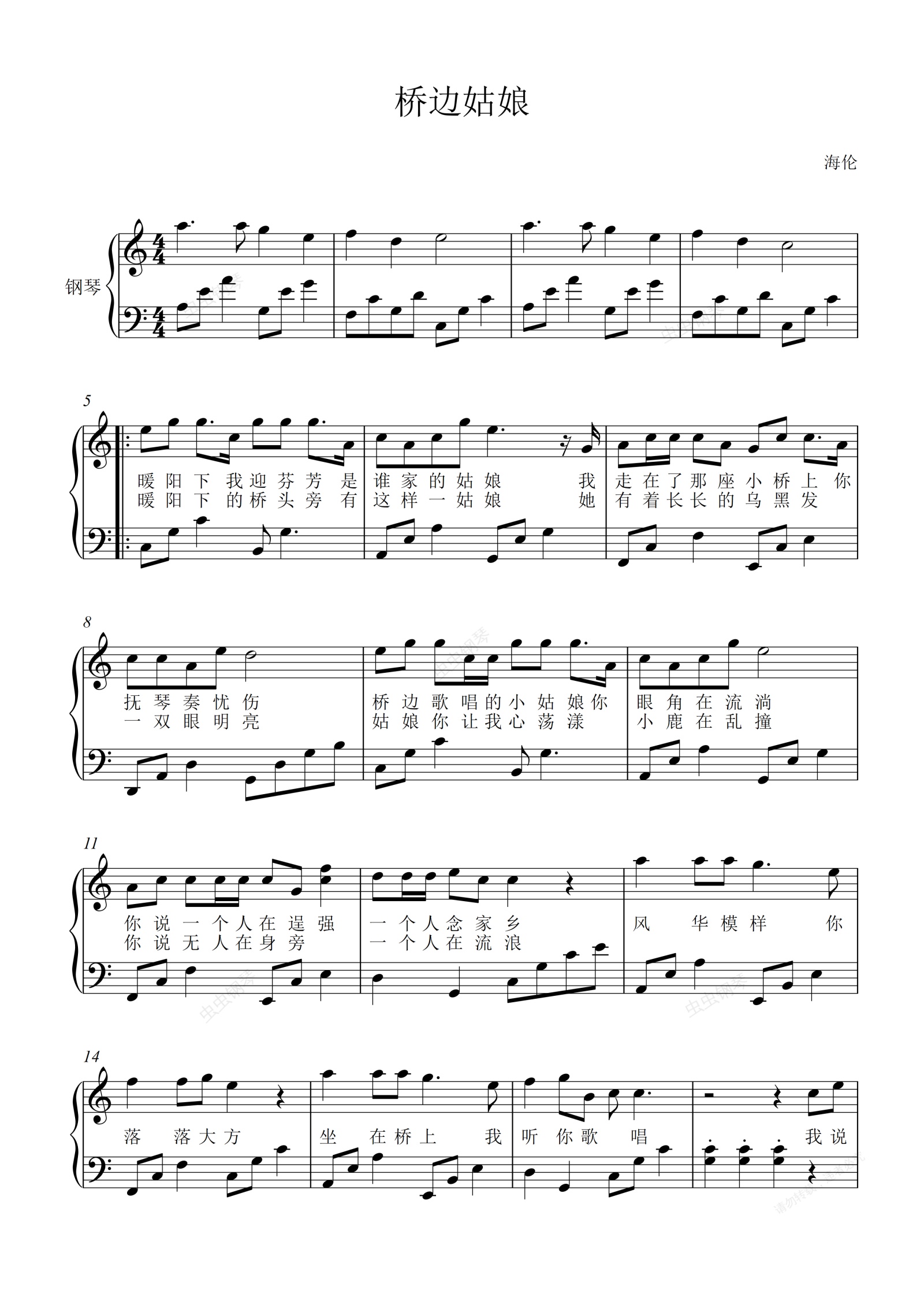 您的位置: 首页 > 钢琴谱库 > 桥边姑娘钢琴谱-海伦