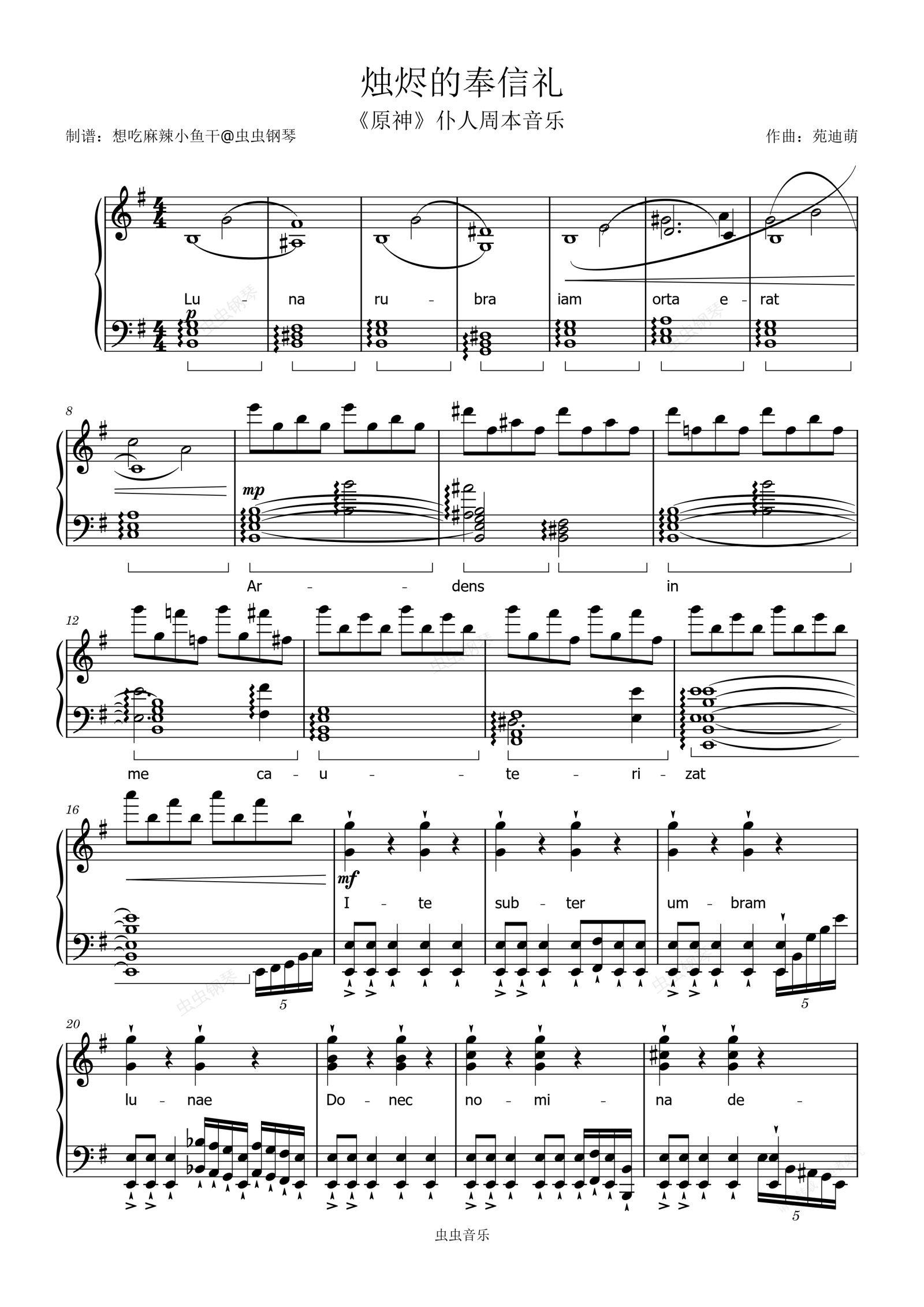 钢琴谱:烛烬的奉信礼(《原神》仆人周本音乐)