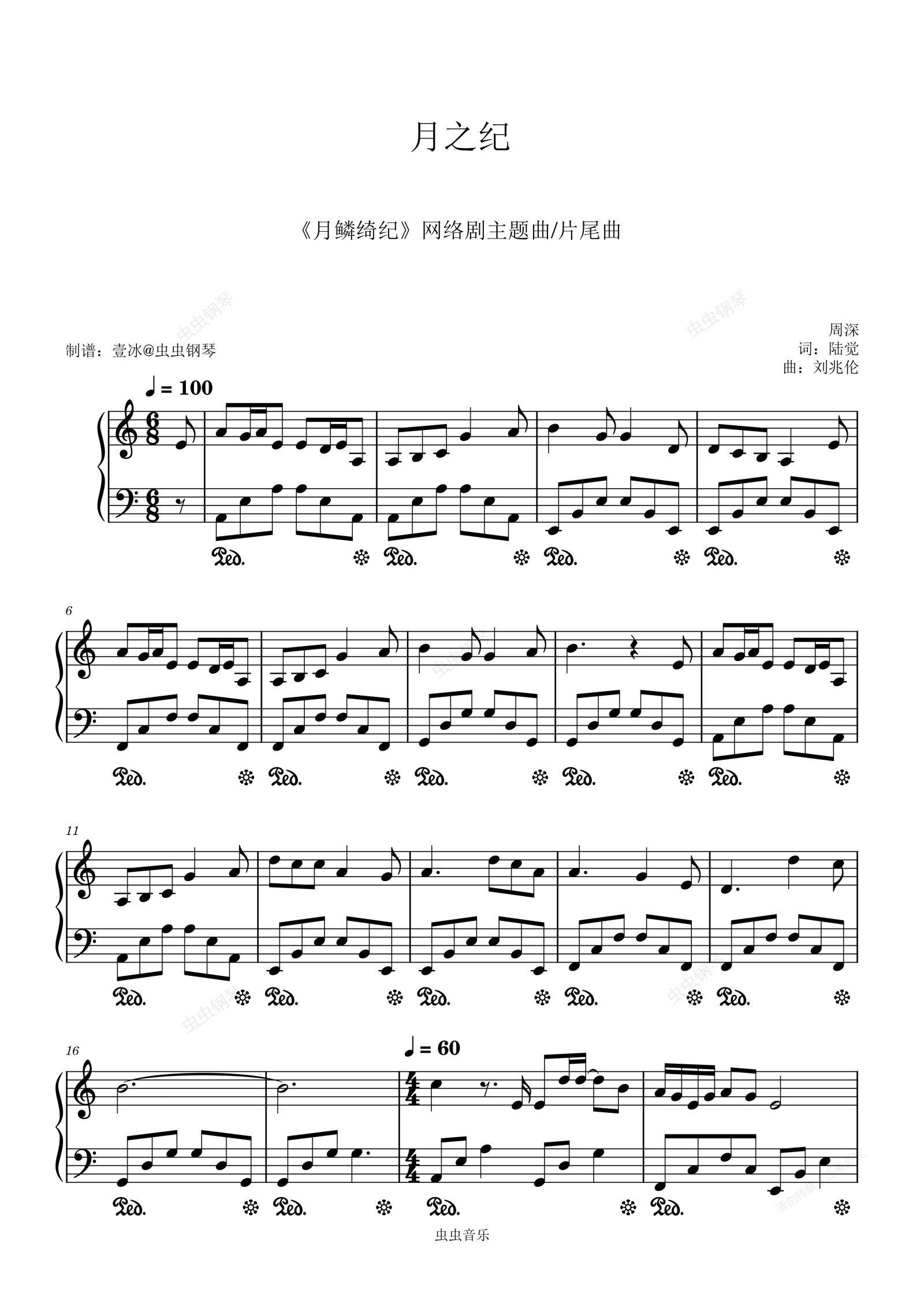 钢琴谱:月之纪 (《月鳞绮纪》网络剧主题曲/片尾曲) - 周深 C调