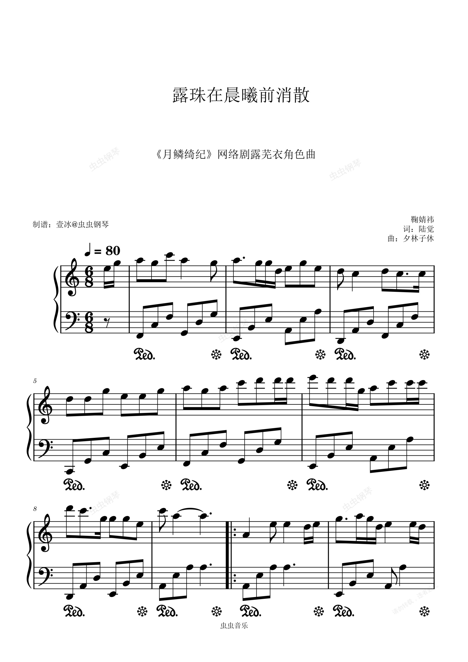 钢琴谱:露珠在晨曦前消散 (《月鳞绮纪》网络剧露芜衣角色曲) - 鞠婧祎 C调