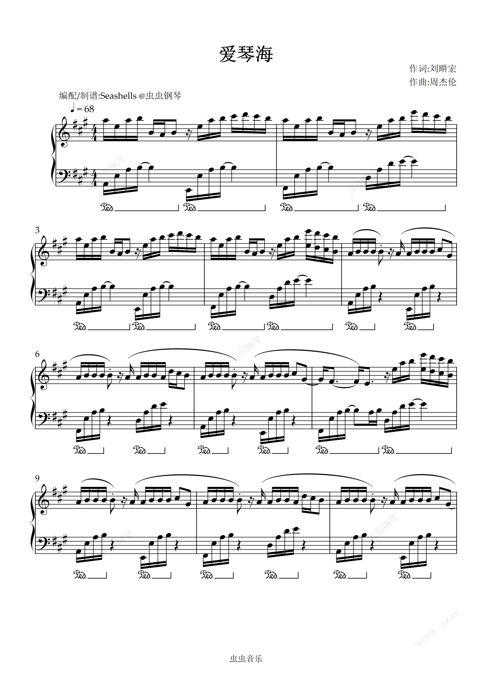 钢琴谱:周杰伦 - 《爱琴海》钢琴独奏谱