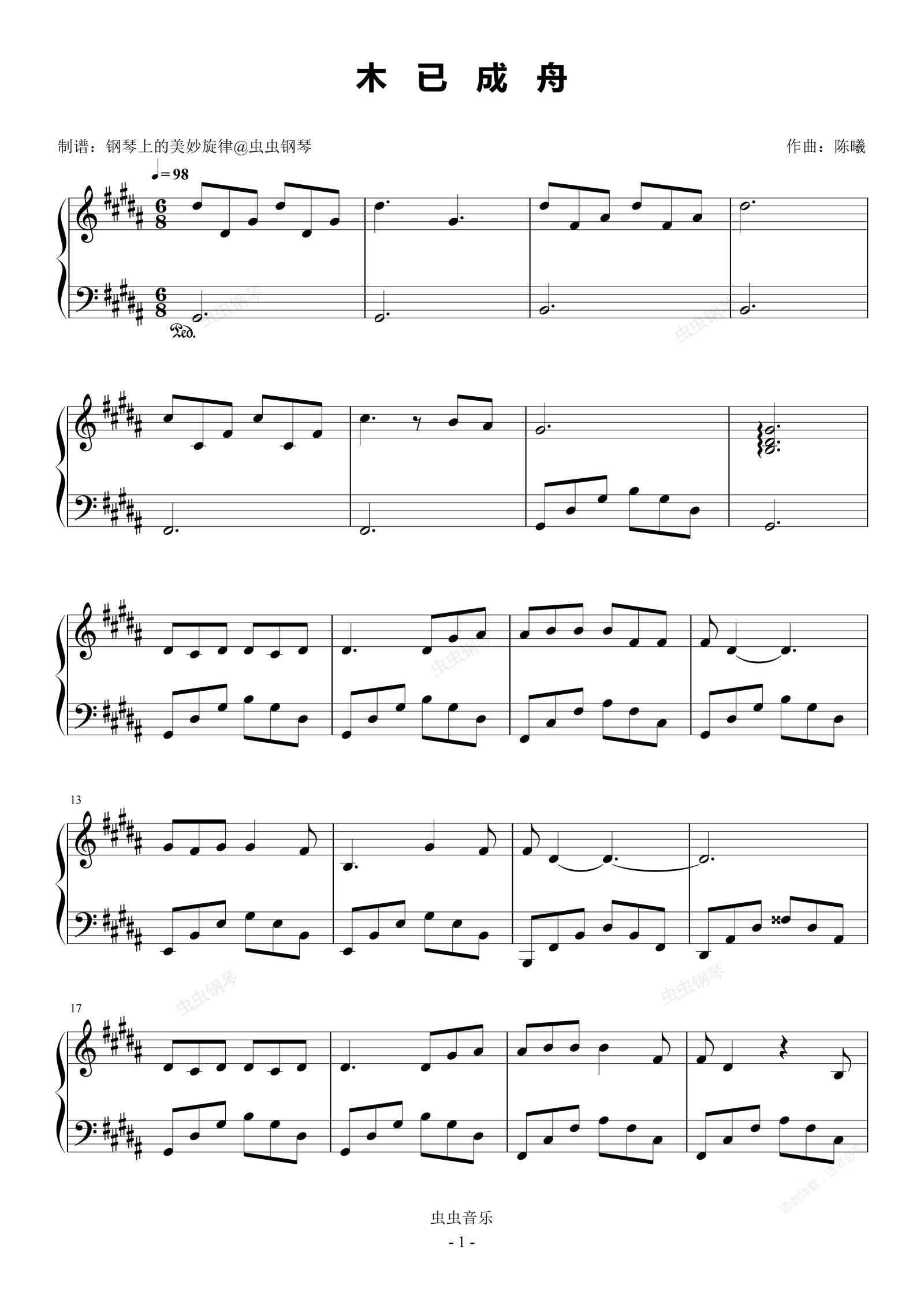 钢琴谱:木已成舟 原调简易版 张远 逐玉