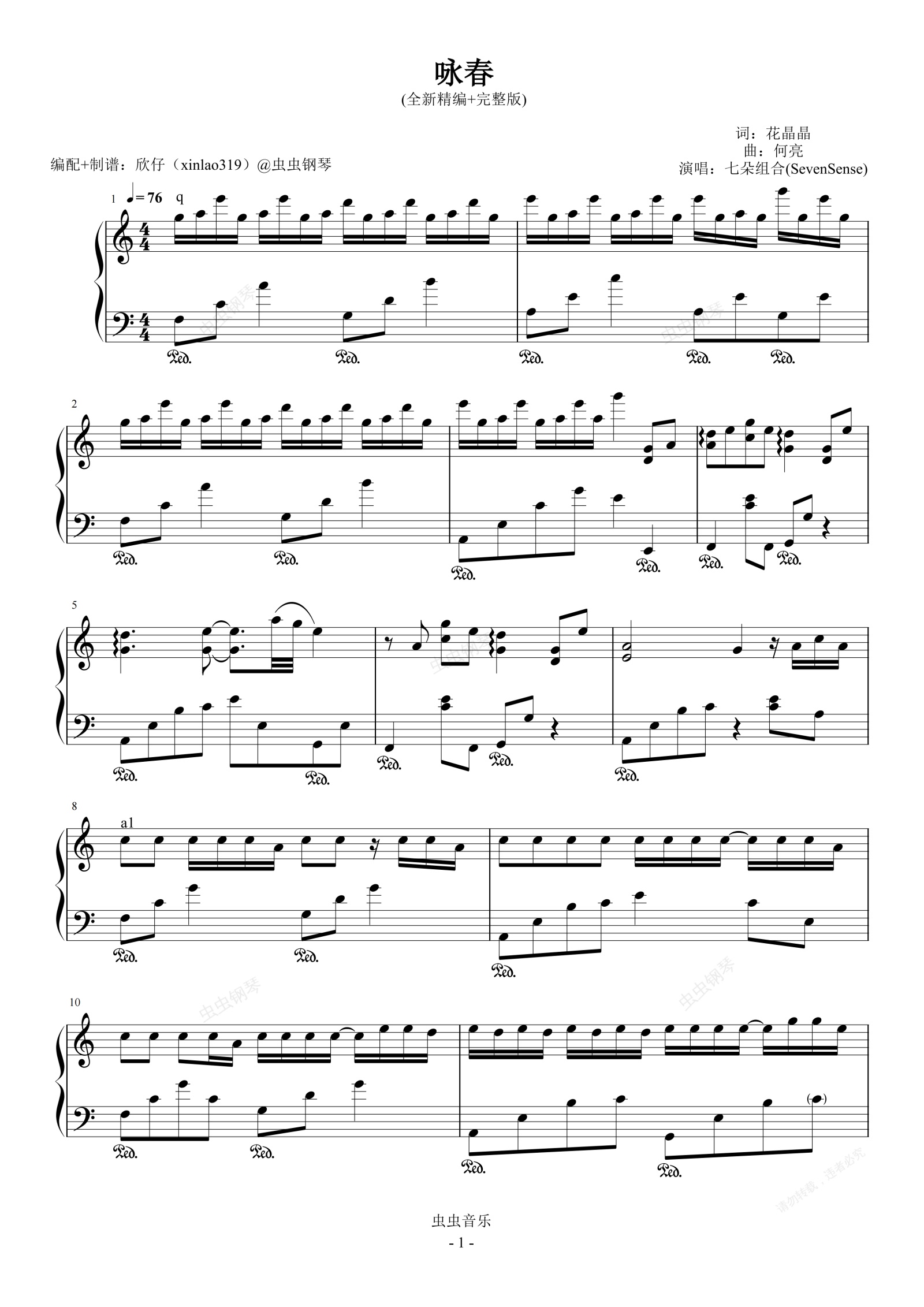 钢琴谱:咏春(C、七朵组合、全新精编+完整版)