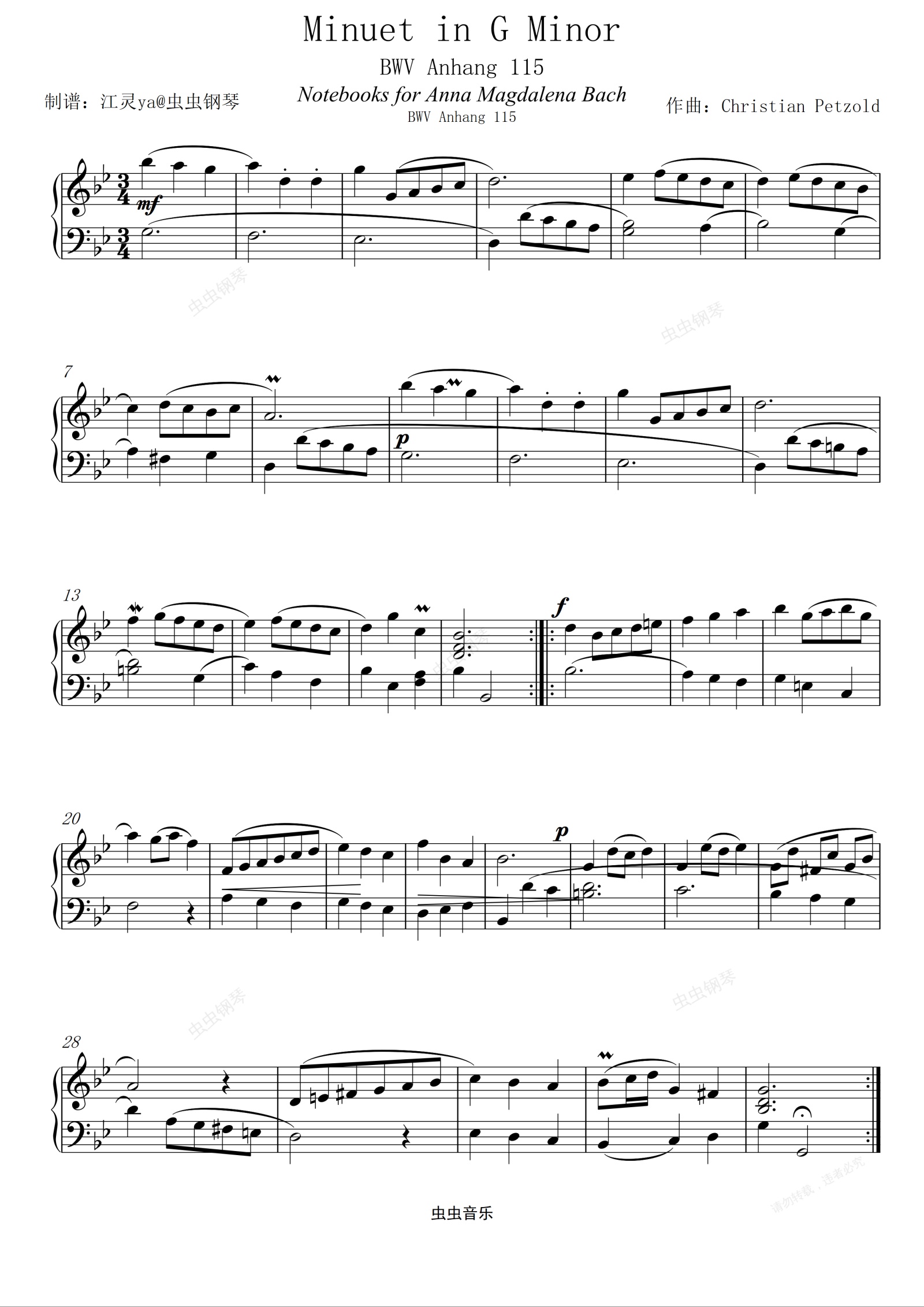 钢琴谱:Minuet in G Minor