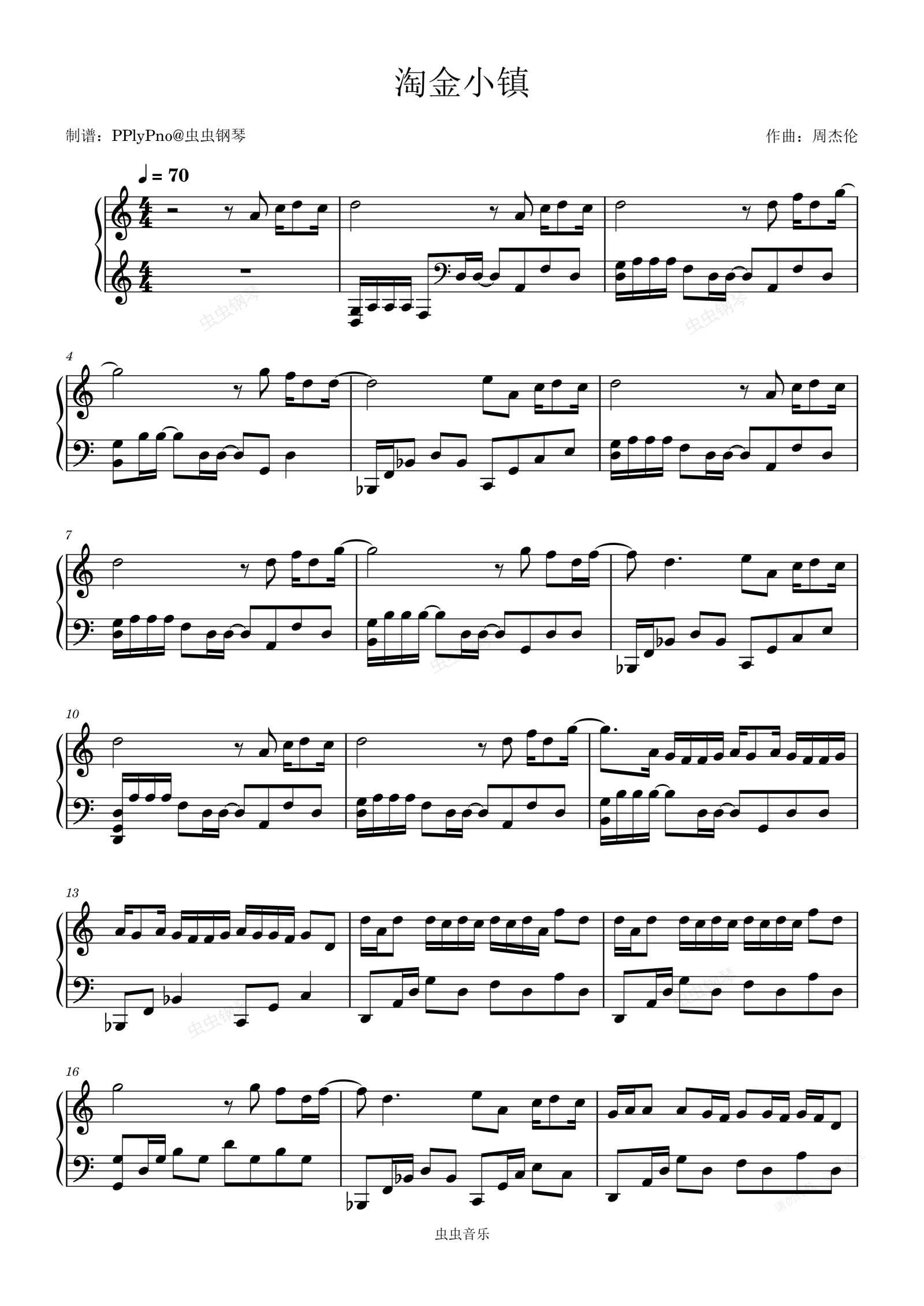 钢琴谱:淘金小镇C调版