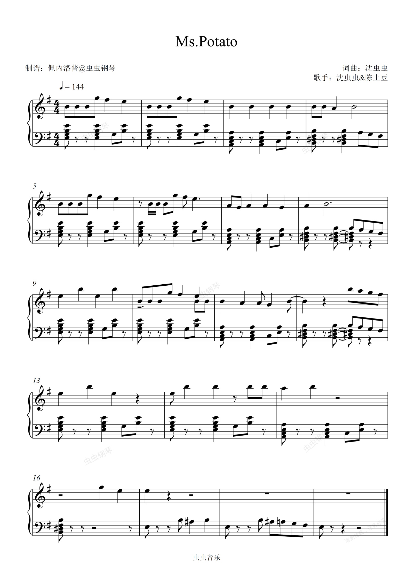 钢琴谱:《Ms.Potato》沈虫虫&陈土豆