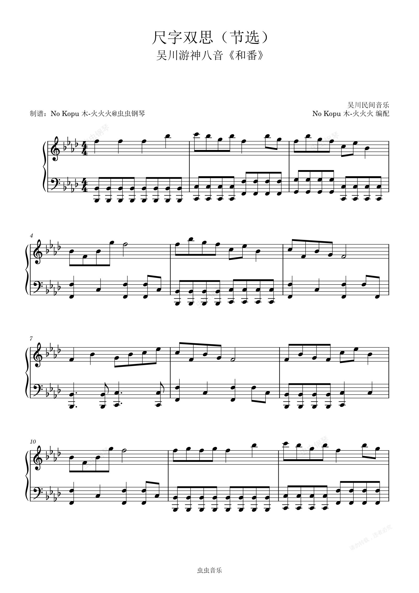 钢琴谱:《尺字双思》别名:和番(吴川游神八音)