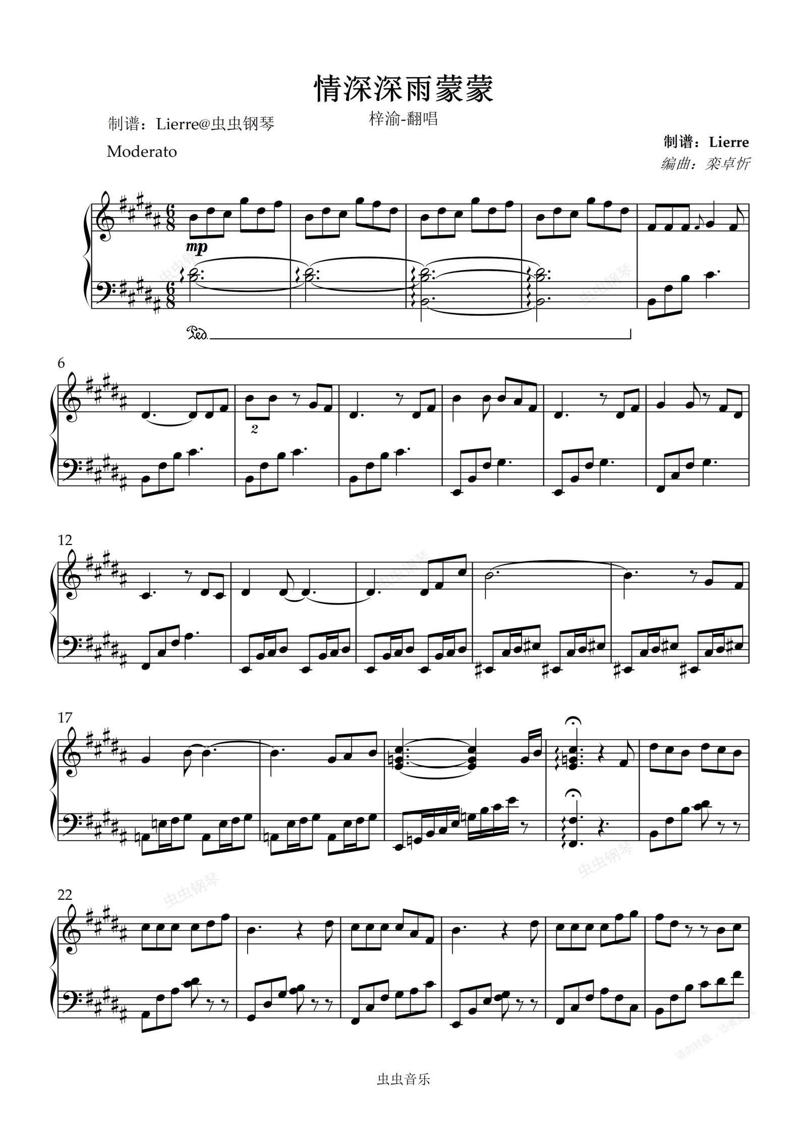 钢琴谱:「情深深雨蒙蒙」现代器乐编曲重塑 梓渝翻唱