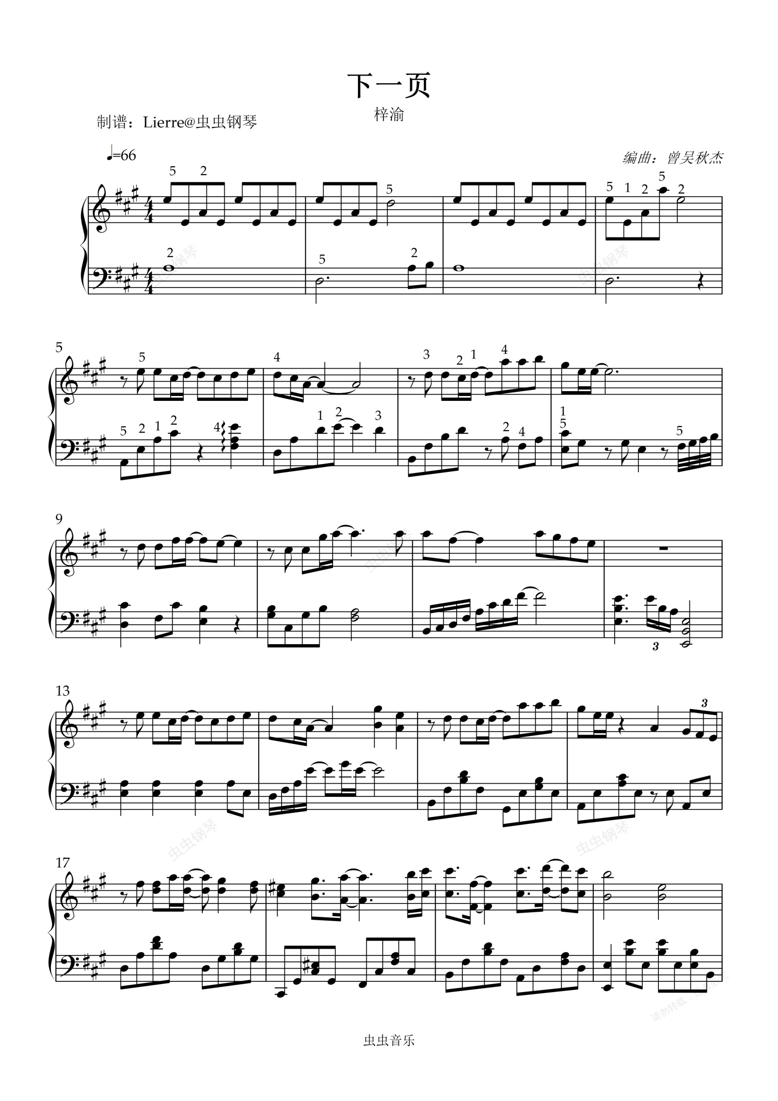 钢琴谱:「下一页」微博网友年度喜爱音乐TOP1 梓渝