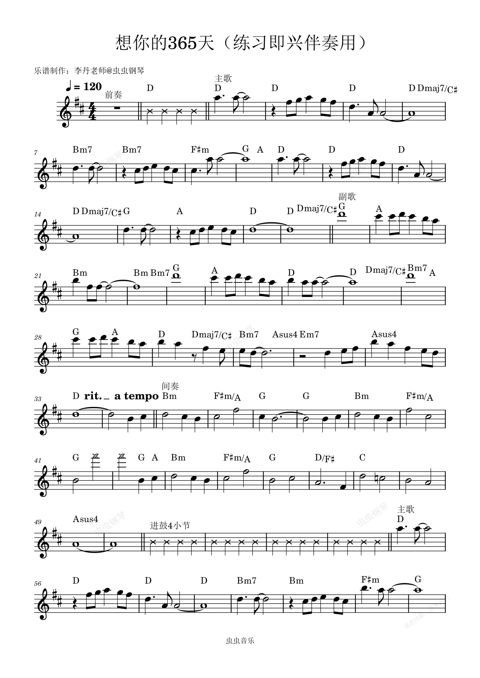 钢琴谱:想你的365天(练习即兴伴奏用)