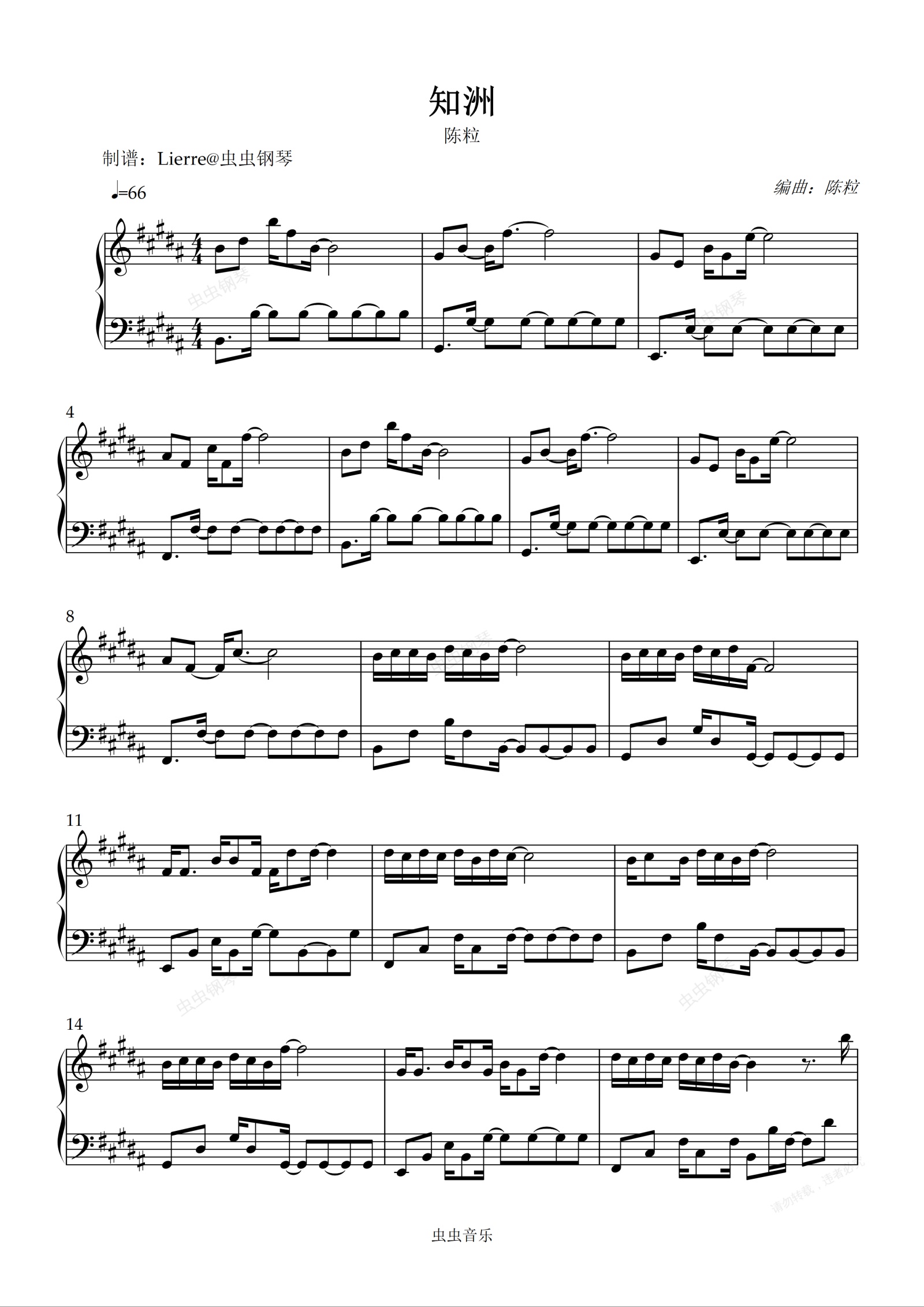 钢琴谱:「知洲」 陈粒《防沉迷》
